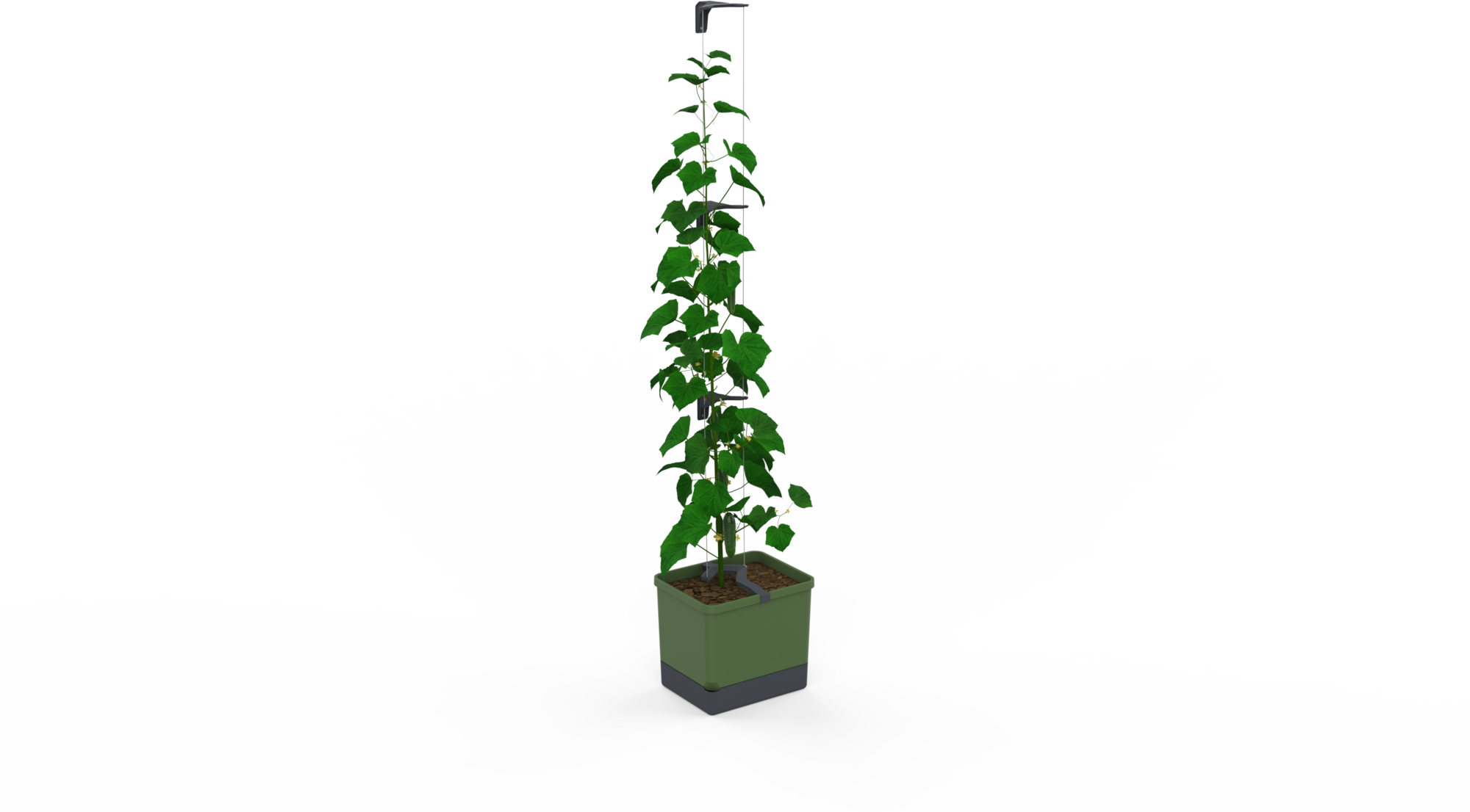 Esta maceta proporciona el entorno de cultivo perfecto para los pepinos y garantiza que puedan trepar sin esfuerzo por cualquier pared. Con un depósito de agua integrado y un innovador sistema de soporte para trepar, CURT CUCUMBER le proporcionará exuberantes plantas de pepino y una abundante cosecha.