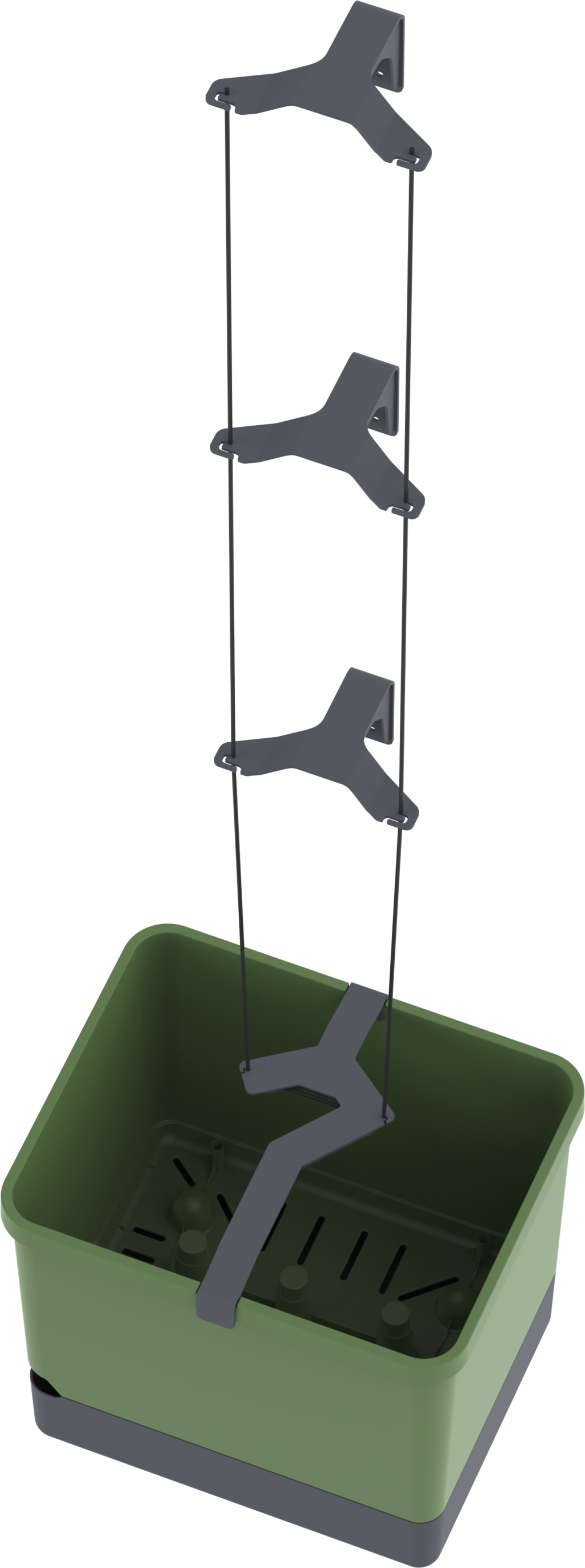 - Contenido del paquete: 1 maceta, 1 depósito de agua, 2 cintas de riego, 1 travesaño, 3 ganchos de pared, 4 m de cable.