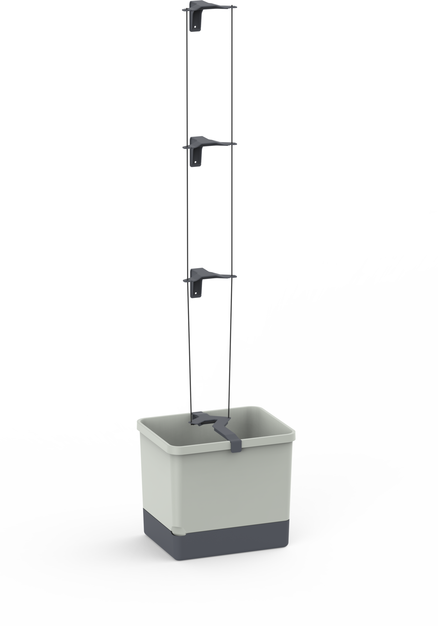 - Contenido del paquete: 1 maceta, 1 depósito de agua, 2 cintas de riego, 1 travesaño, 3 ganchos de pared, 4 m de cable.