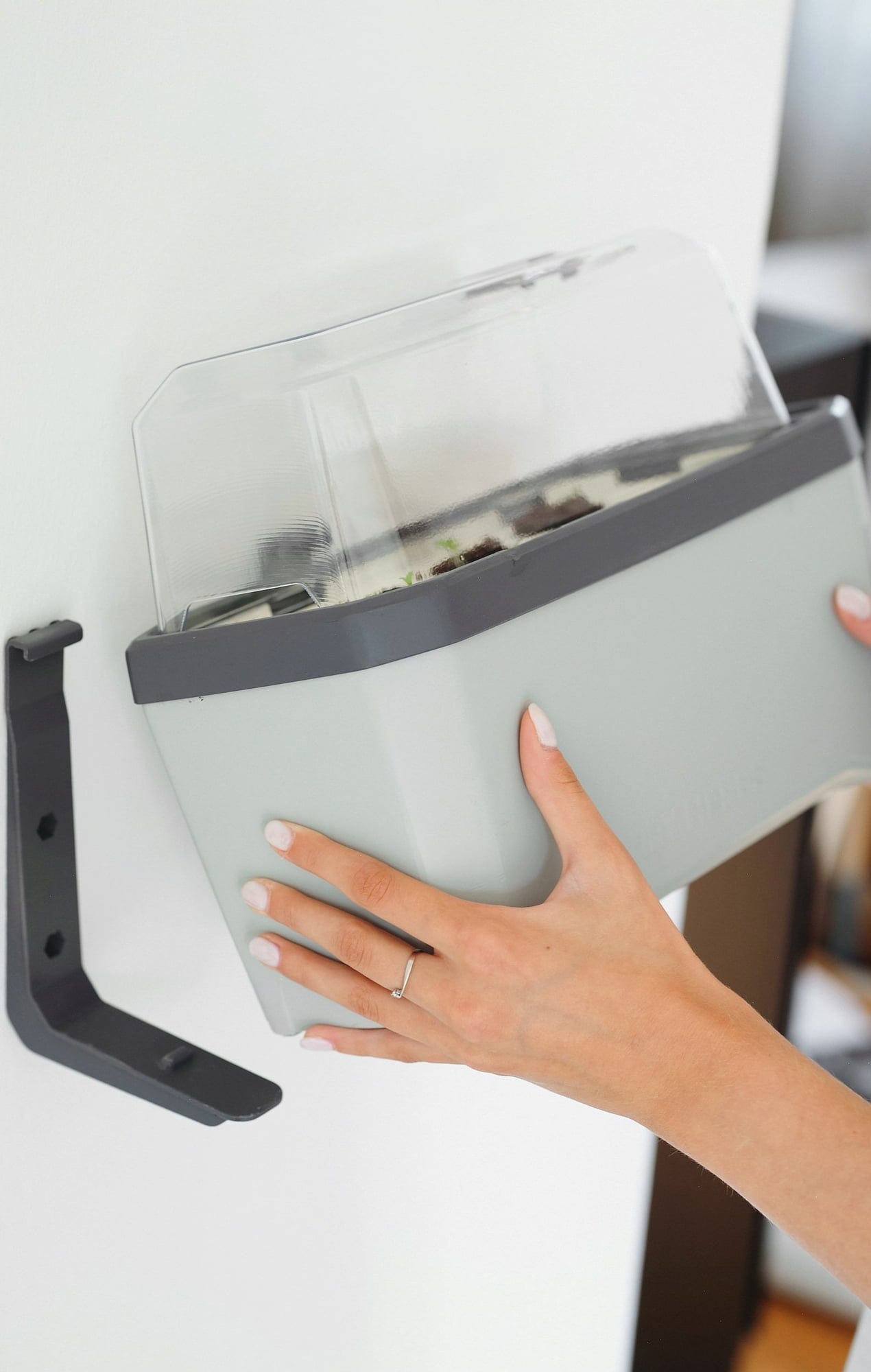Con este práctico set de 2 soportes de pared podrás fijar fácilmente tu maceta de hierbas HARRY HERBS a la pared. Todo lo que necesita es un destornillador inalámbrico. Así podrá aprovechar al máximo el espacio de su hogar y disfrutar de hierbas frescas y deliciosos microgreens durante todo el año.