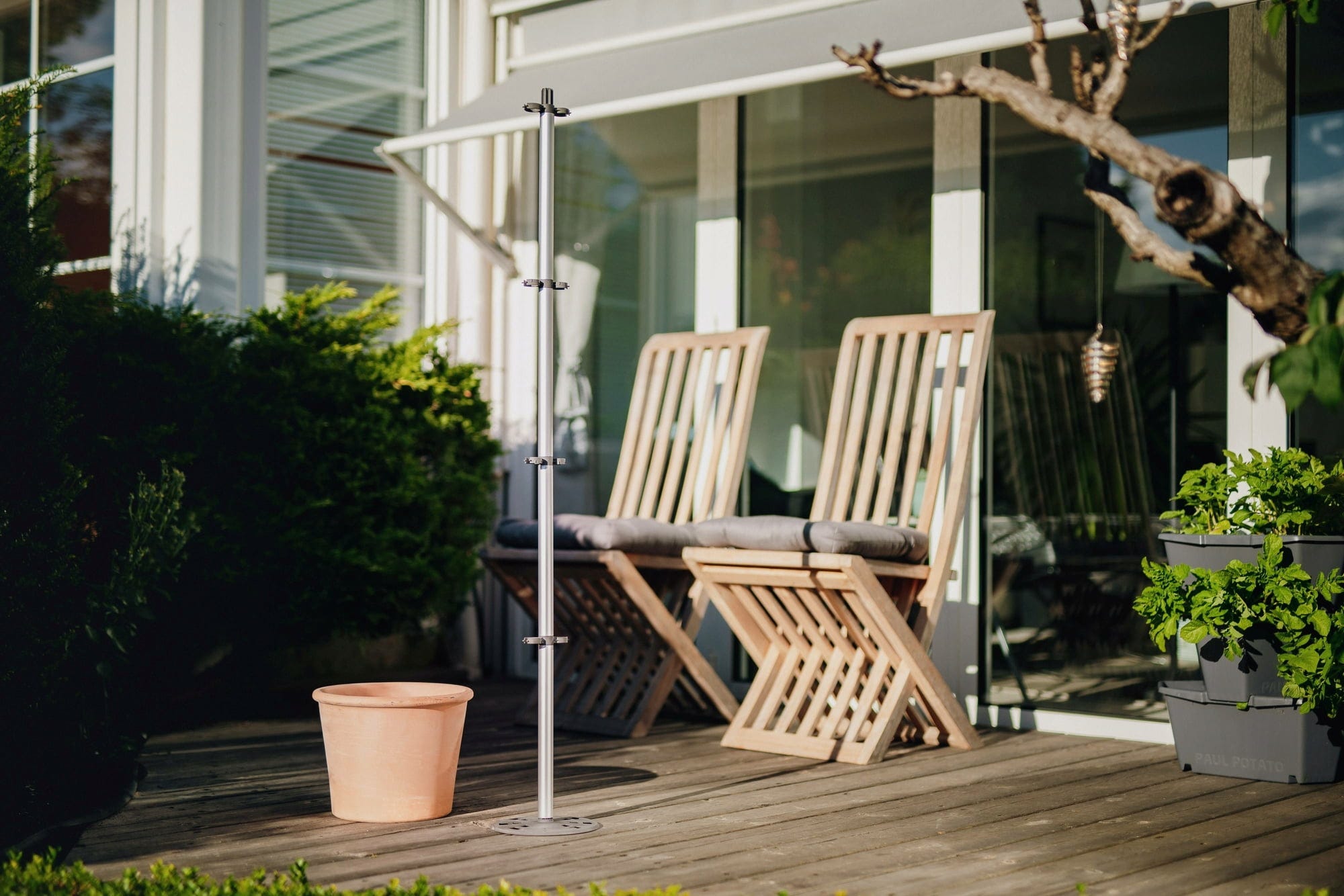 TOMATO BUDDY es el mejor amigo de sus tomateras, ya que les ofrece el apoyo adecuado para un crecimiento sano y fuerte. El aluminio de alta calidad y la base integrada hacen que TOMATO BUDDY sea especialmente estable y garantizan que no se vuelque. Puede combinarlo con cualquier maceta para convertirlo en un perfecto macetero para tomates.