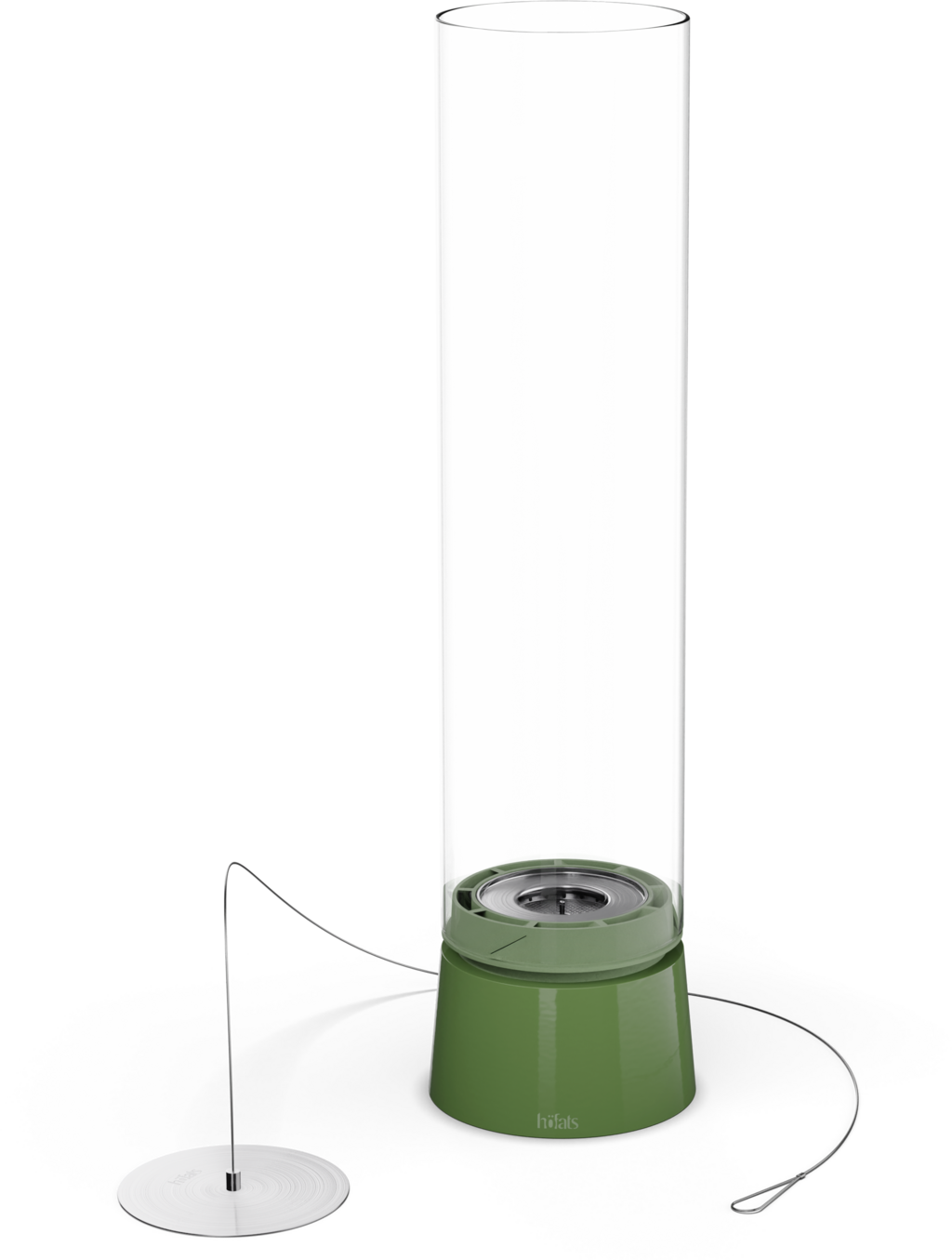 Equipamiento: base, cuerpo con recipiente de seguridad, Bio-Burner con Eco-Ring y tapa de apagado, cilindro de vidrio.