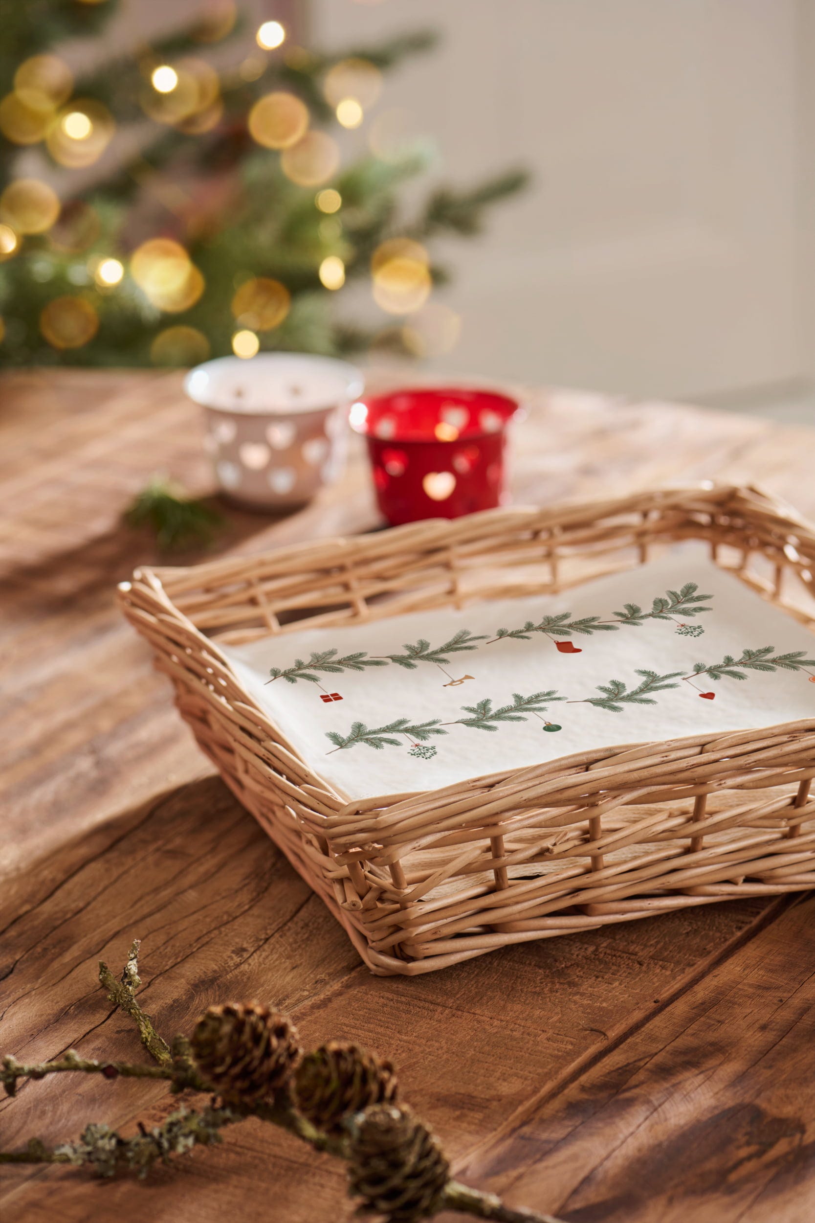 Esta cesta de mimbre hecha a mano es una forma especialmente elegante de guardar las servilletas y un complemento chic para mesas decoradas con buen gusto.