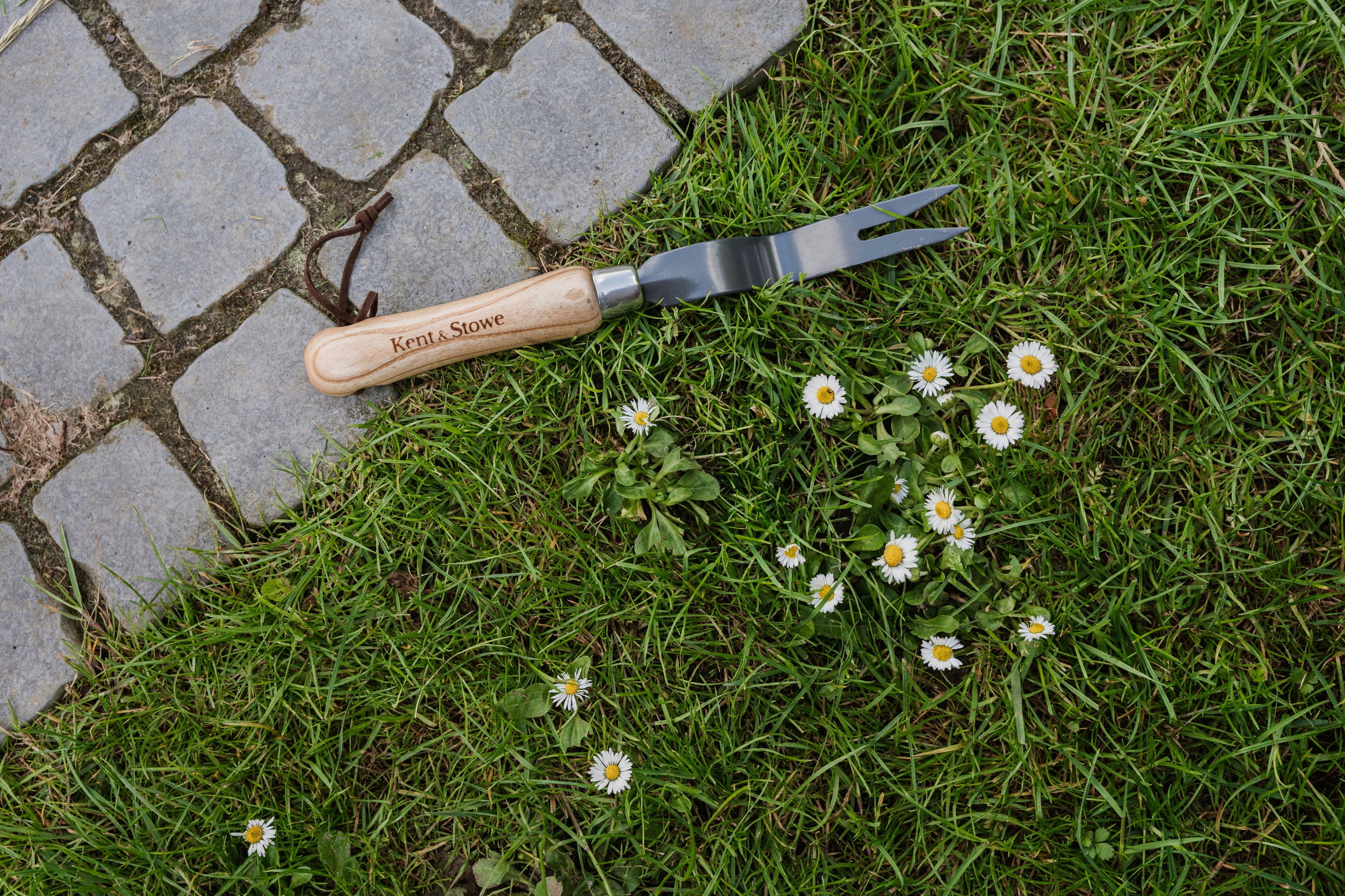 Desbrozadora de alta calidad, un práctico aliado para eliminar malas hierbas de raíz pivotante como el diente de león. El cabezal estrecho penetra profundamente en el suelo, lo que permite eliminar eficazmente las raíces sin dañar las plantas circundantes.