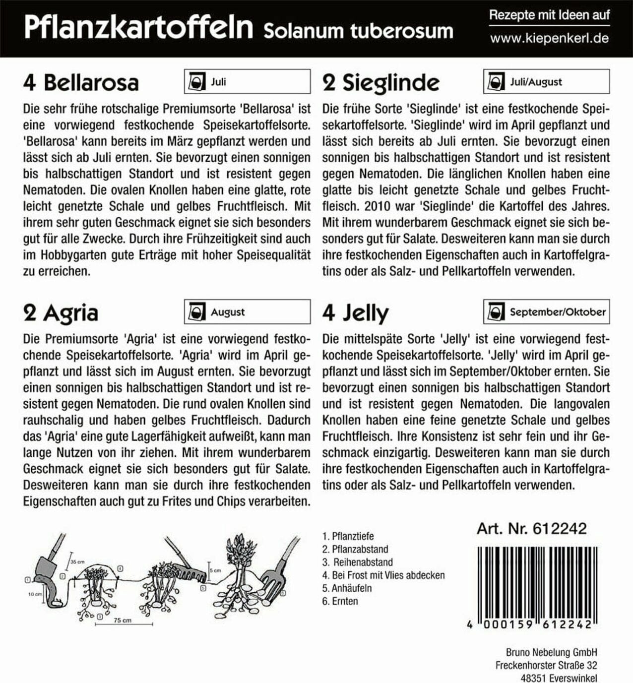 Kiepenkerl Patatas de Siembra Cuarteto "Época de Maduración", 12 piezas