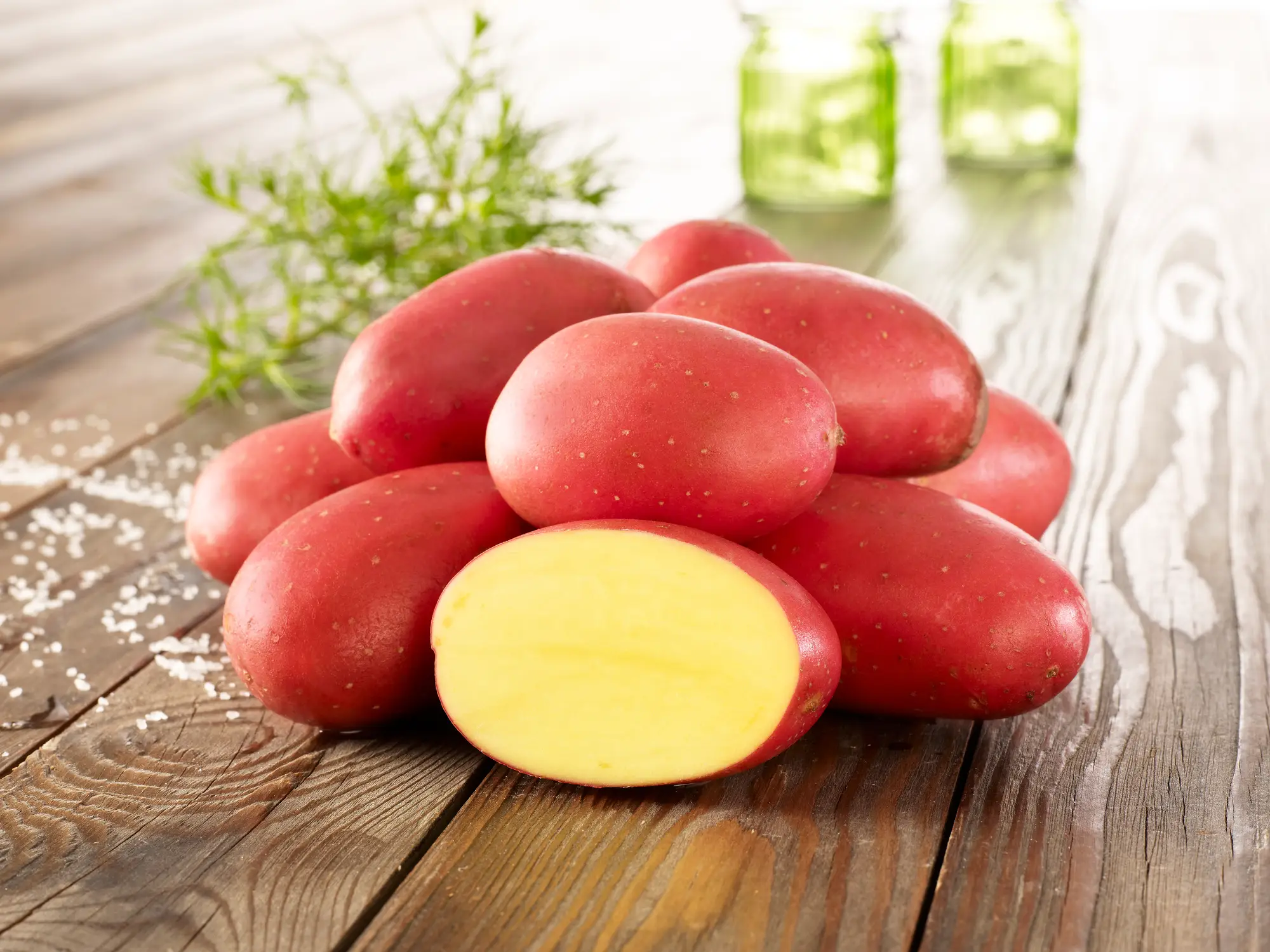 - Tubérculos ovalados alargados de piel roja y lisa