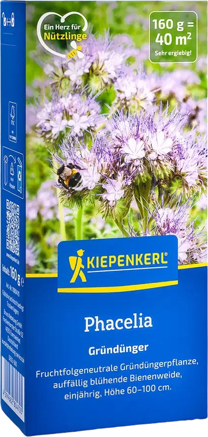 La Phacelia es una planta de abono verde neutra en la rotación de cultivos, que crece rápidamente y suprime las malas hierbas. Con su extenso sistema radicular, mejora el equilibrio de agua y oxígeno, así como la estructura del suelo. Durante la floración, atrae a numerosos insectos y crea un mar de flores de color azul suave.