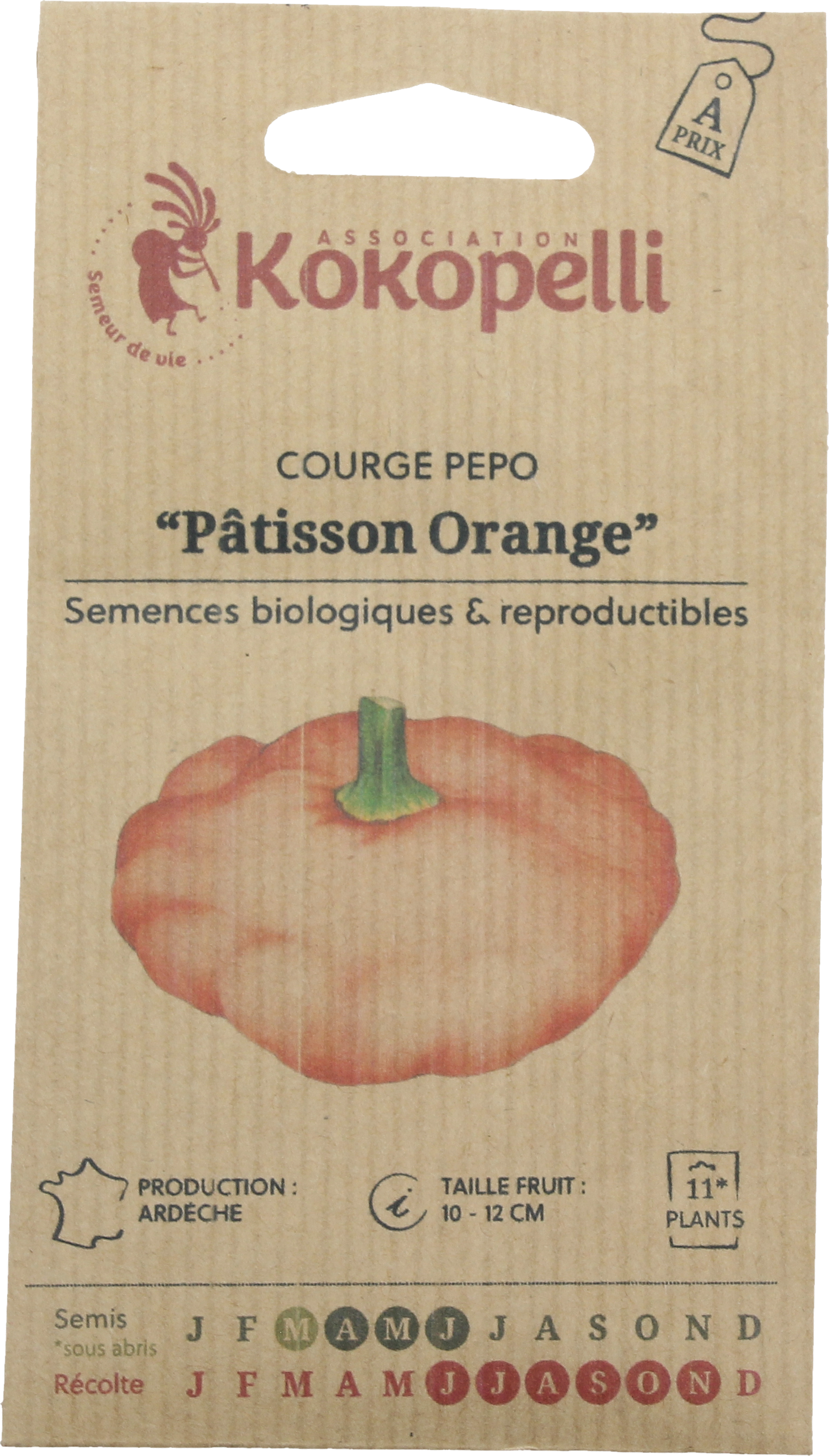 Kokopelli Calabaza Bio - Naranja Patisson, 12 semillas
