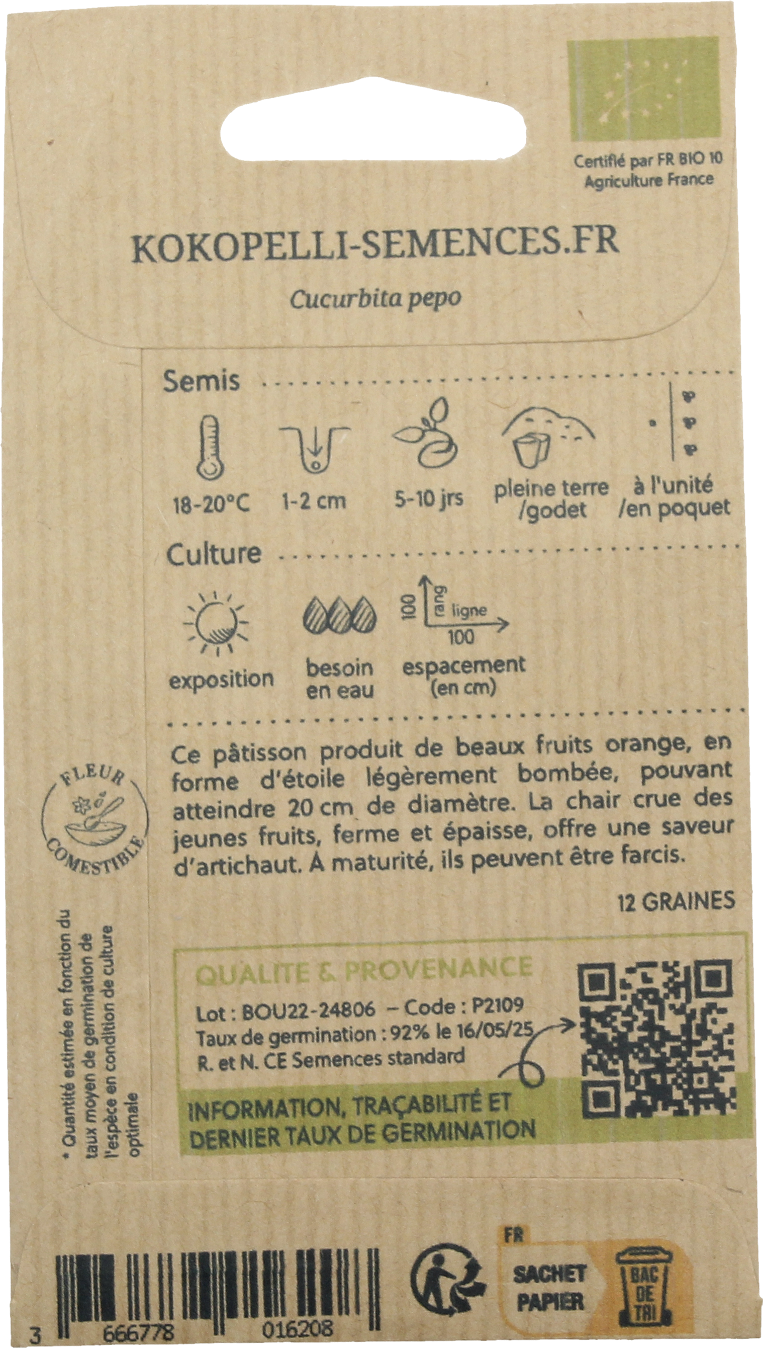 | Fabricante: | Association Kokopelli, 7 Route de Sabarat, Foret de Castagnes, 09290, Le Mas D'Azil, Francia, professionnels@kokopelli-semences.fr, www.kokopelli-semences.fr |