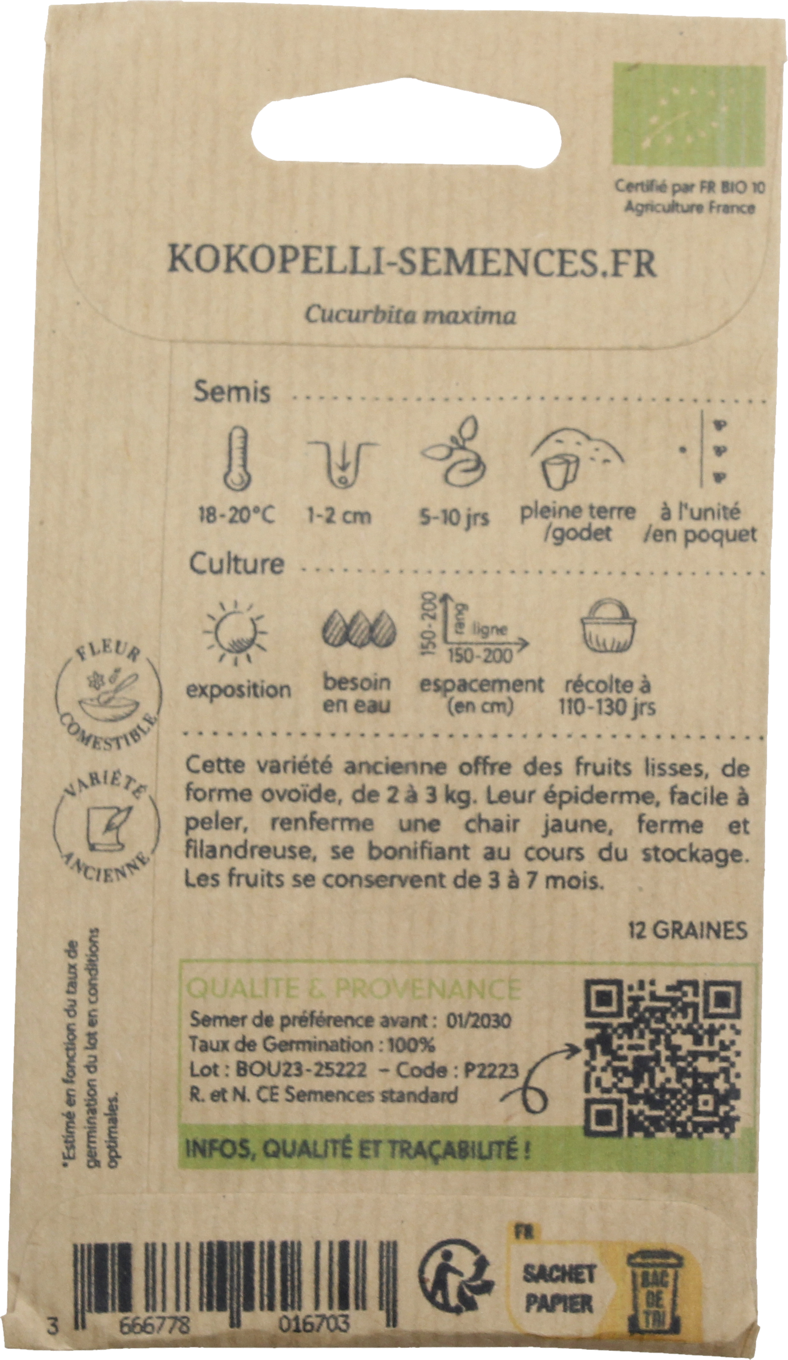 | Fabricante: | Association Kokopelli, 7 Route de Sabarat, Foret de Castagnes, 09290, Le Mas D'Azil, Francia, professionnels@kokopelli-semences.fr, www.kokopelli-semences.fr |