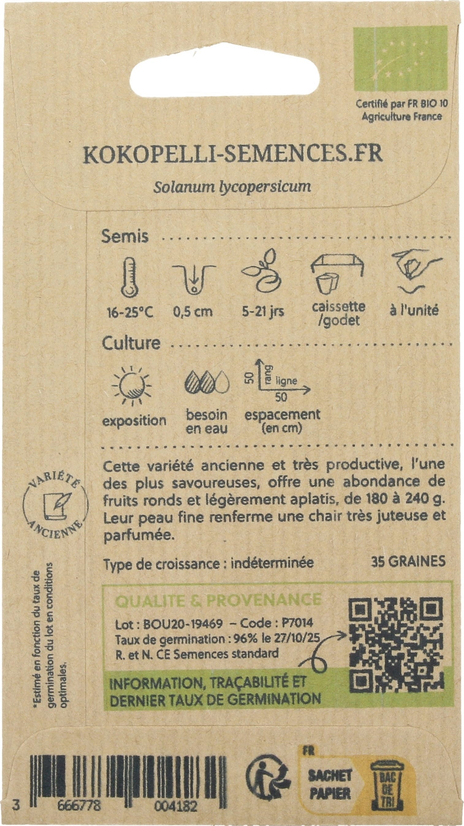 Kokopelli Tomate Bio - Rosa de Berna, 35 semillas