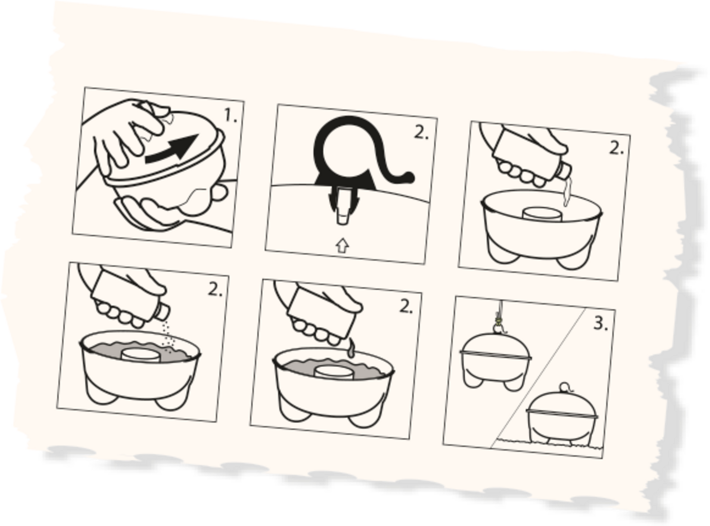 Modo de empleo: dependiendo de la plaga, llena la trampa con agua o una solución diluida e introduzca el atrayente adecuado. Hay siete atrayentes diferentes disponibles, por ejemplo, para caracoles, moscas, avispas u orugas de mariposa.