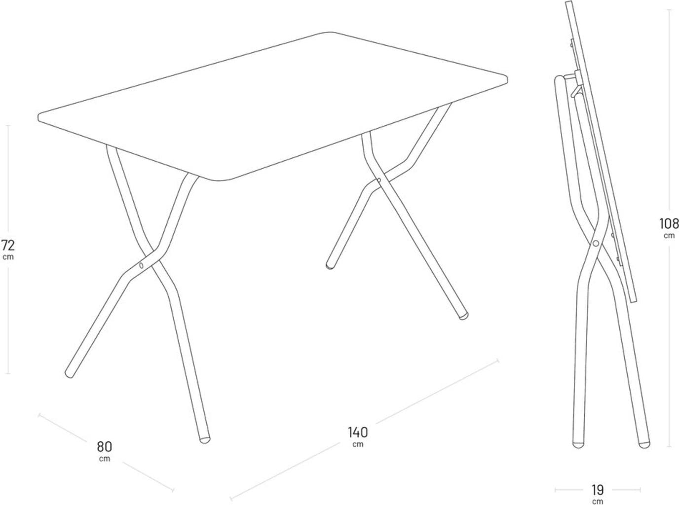 Si el suelo es algo irregular, puedes nivelarlo en un abrir y cerrar de ojos mediante las patas ajustables, garantizando una estabilidad total sin tambaleos. Su manejo es especialmente práctico: si deseas utilizar el espacio de la terraza o el balcón para otra cosa, puedes plegar la mesa con una sola mano gracias a su asa intuitiva. Está diseñada para mantenerse en pie por sí sola cuando está cerrada, lo que la hace extremadamente compacta y fácil de guardar.