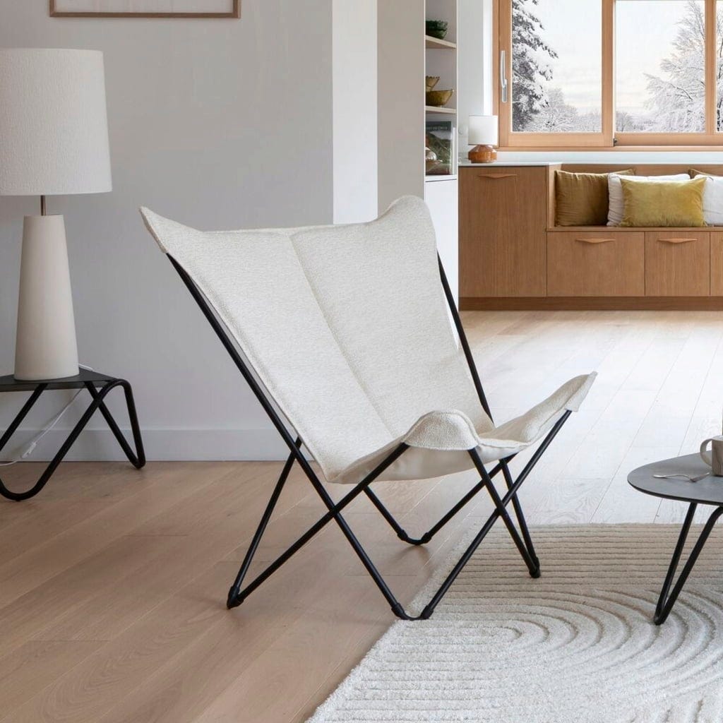 ¡Con el SPHINX Niksen de Lafuma, llevará un auténtico icono del diseño directamente a su salón! La combinación de un asiento extra ancho y el respaldo alto le envuelve suavemente e invita a dejarse llevar y disfrutar plenamente del placer de no hacer nada. El elegante tejido de bouclé es el punto culminante visual: aporta al sillón una textura suave y cálida que crea de inmediato un ambiente acogedor.