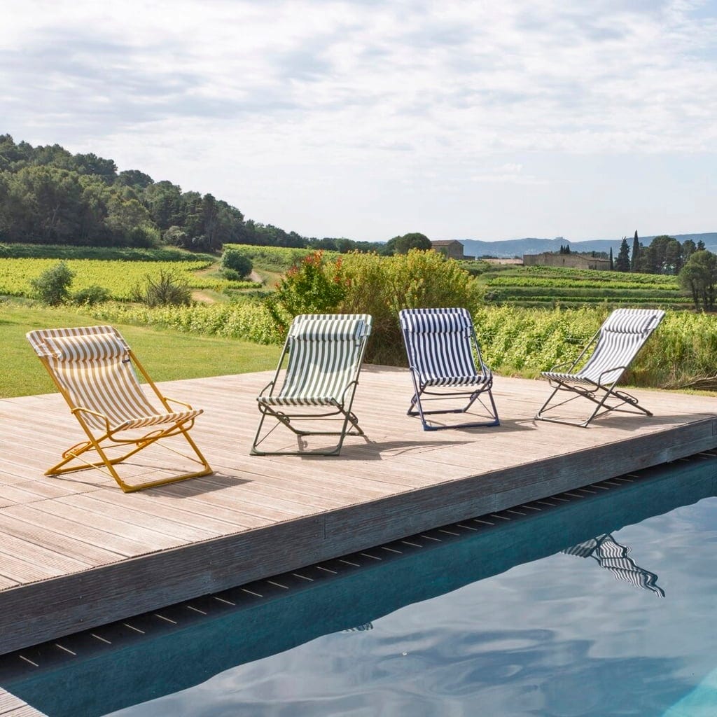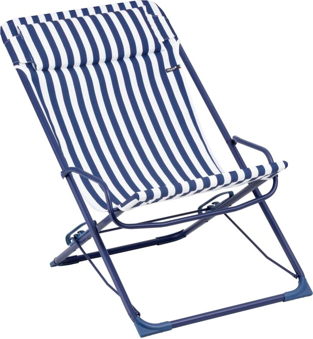 Ya desees sentarte erguido en buena compañía, leer relajadamente o estirarte por completo para una pequeña siesta, gracias al sistema de muescas de seguridad con una práctica barra guía, podrás cambiar de forma fluida entre tres posiciones de bienestar. La funda de Airlon de alta calidad con un diseño marítimo aporta toques de estilo a tu balcón o jardín. Además, el sillón se pliega en un abrir y cerrar de ojos y cabe incluso en el rincón más pequeño.