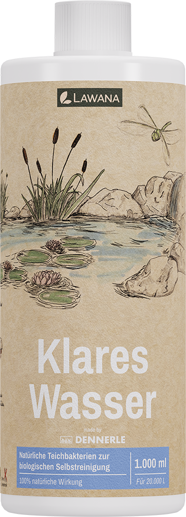 Ya sea para instalaciones nuevas, después de un cambio de agua o con una elevada población de peces, Clear Water de LAWANA garantiza grandes resultados y una profundidad visual impresionante en estanques koi, estanques de natación o instalaciones clásicas de jardín. Una ventaja especial: El producto no contiene OGM y cuida el agua de forma natural