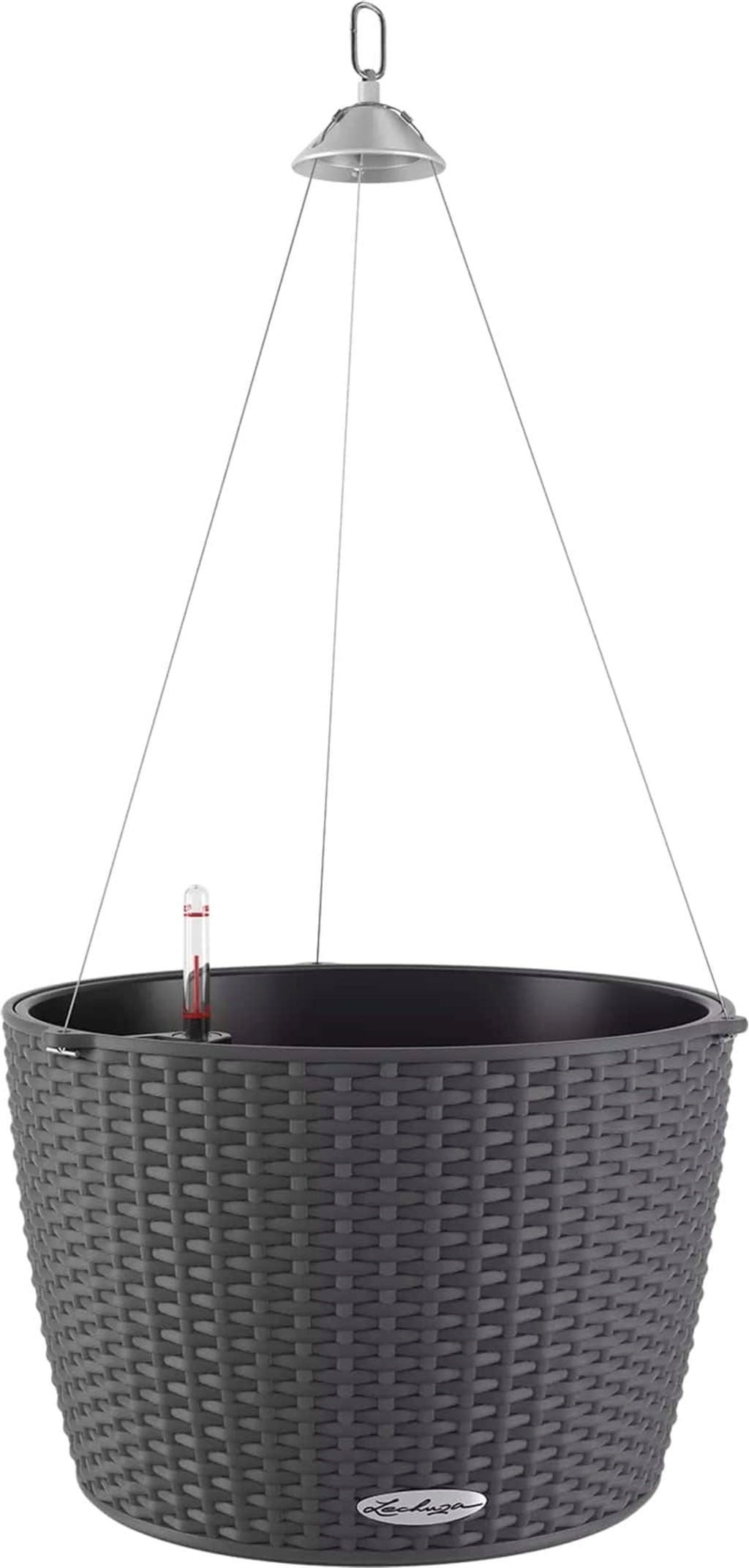 Fabricada en plástico de alta calidad, resistente a las heladas y a los rayos UV, este macetero colgante está perfectamente equipado para su uso en balcones y terrazas. El gran depósito, que incluye un tornillo extraíble para drenar el agua, asegura siempre un riego perfecto. La atractiva estructura trenzada de la colección "Cottage" de Lechuza le da un toque extra a tu hogar, incluso en el balcón más pequeño.
