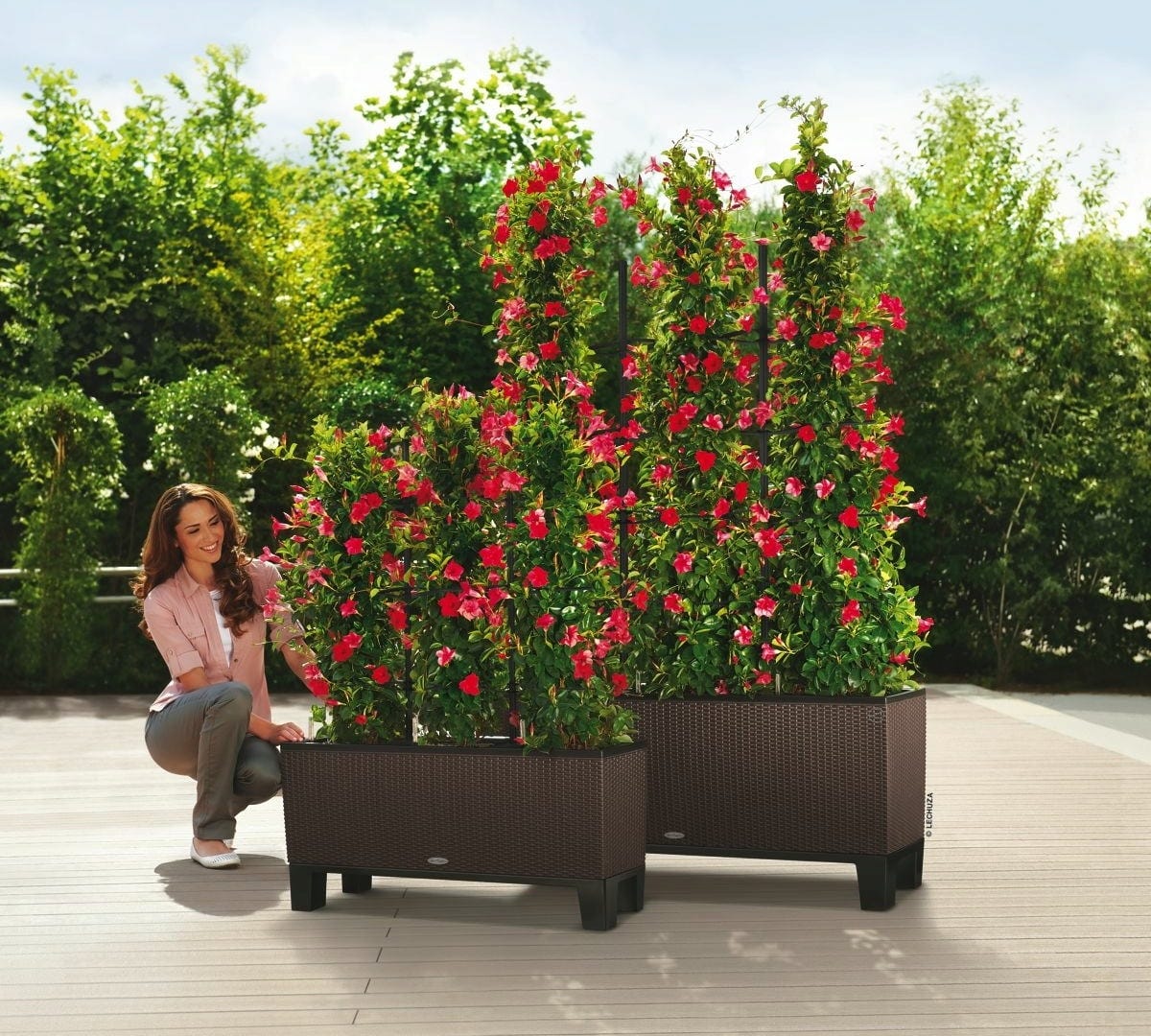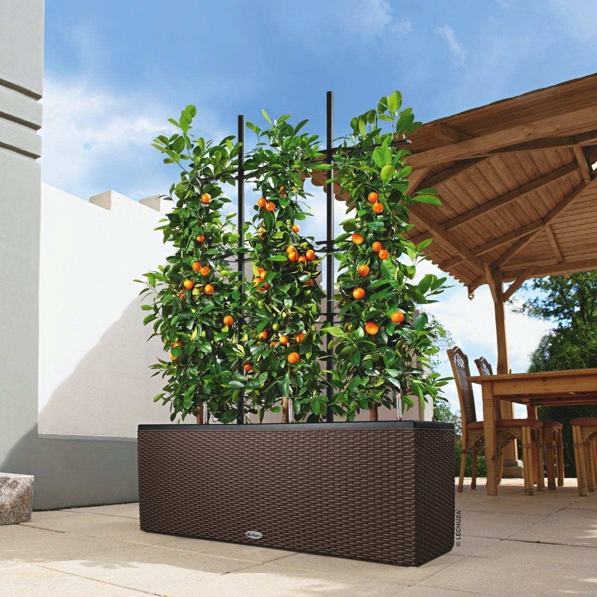 TRIO Cottage 40 de Lechuza es una jardinera para flores y verduras absolutamente maravillosa. Su forma también la hace perfecta para usar como separador de ambientes en terrazas o en el jardín.