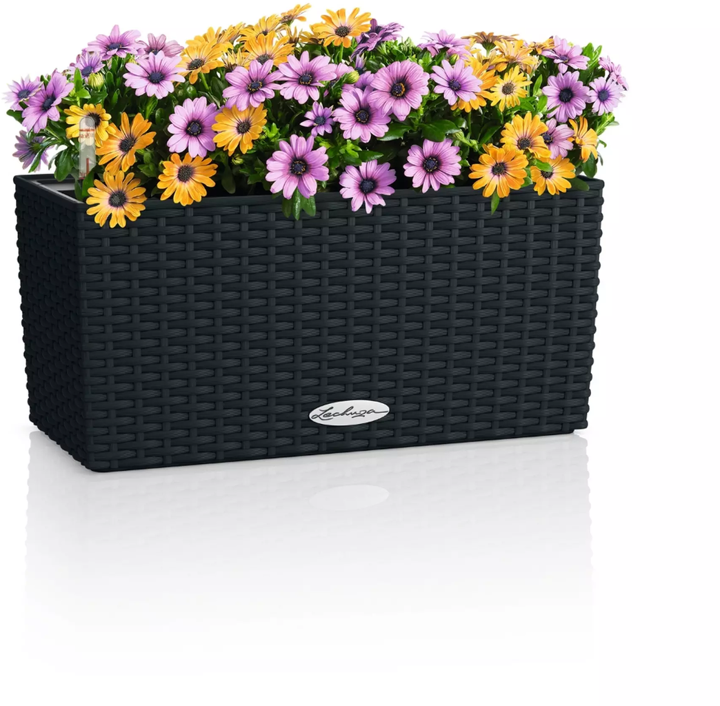 Esta maceta Lechuza de polipropileno resistente a los rayos UV impresiona por su practicidad y elegancia. También se puede fijar a la barandilla del balcón con los accesorios disponibles por separado.