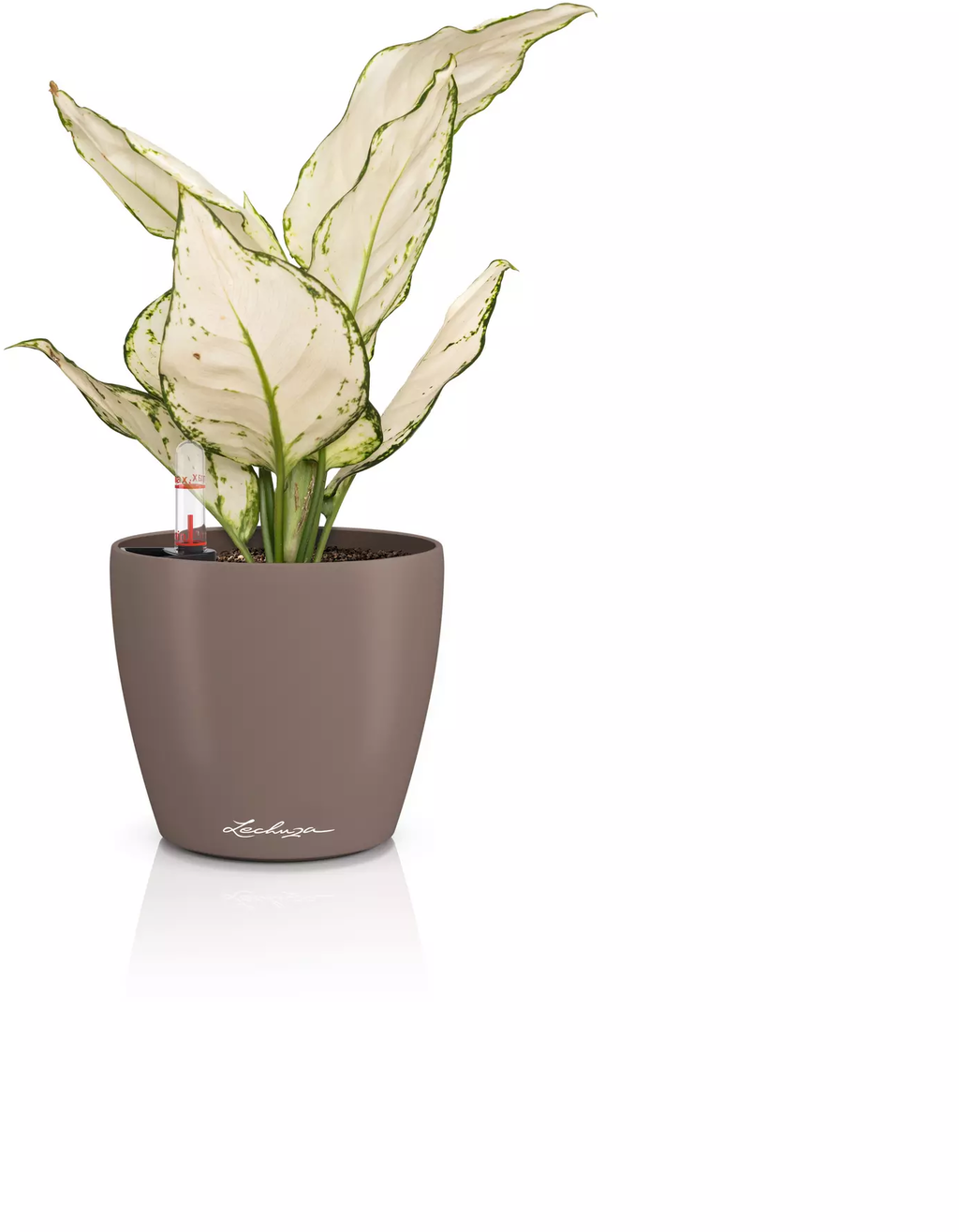 Este clásico atemporal queda bien en cualquier lugar, tanto en interiores como en exteriores. Su forma elegante, sus colores naturales y la habitual alta calidad de Lechuza hacen que las macetas de la serie CLASSICO sean las favoritas, inspirando en igual medida en términos de diseño y calidad. El set de riego Lechuza incluido garantiza un suministro de agua óptimo y plantas magníficas.