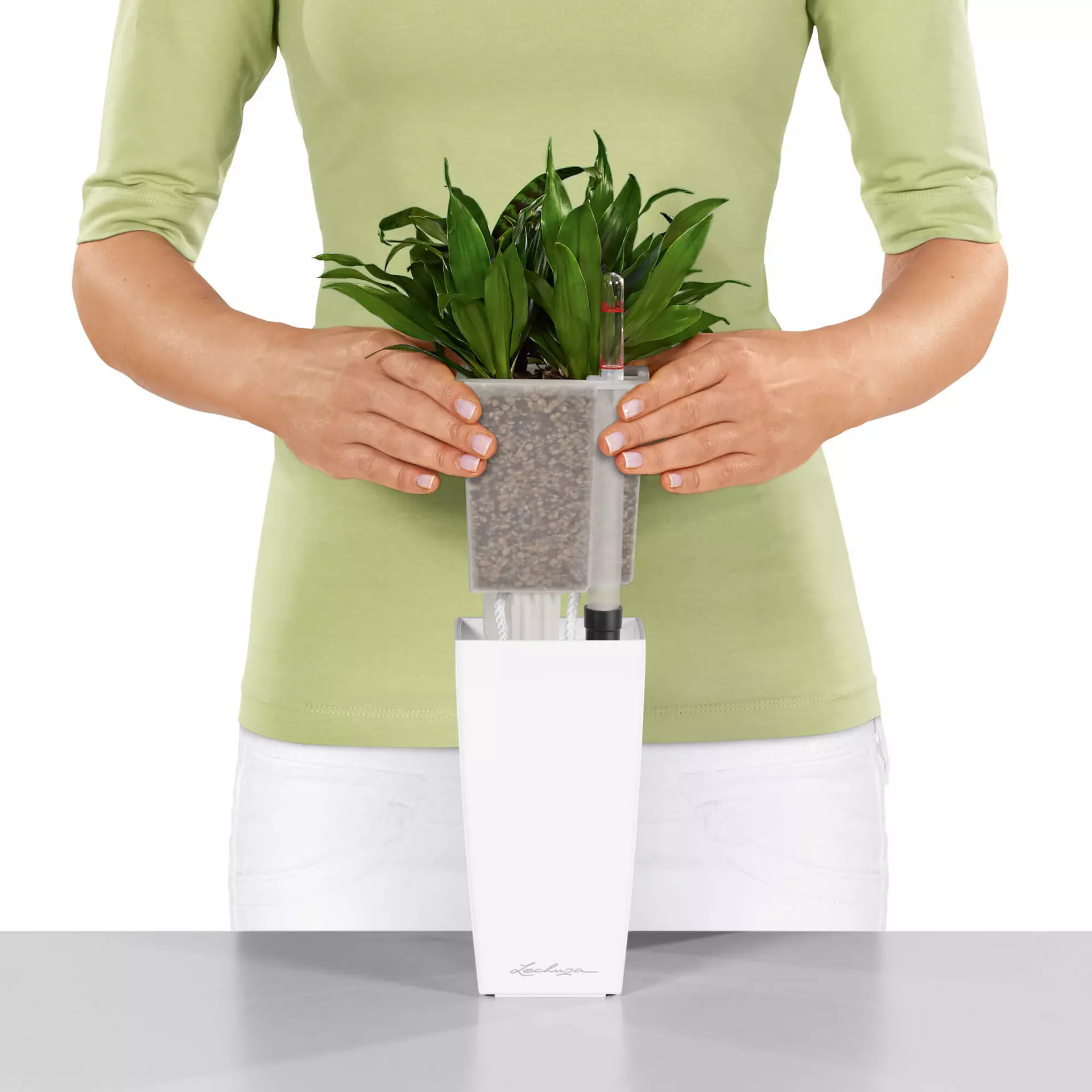 La maceta MAXI-CUBI Premium combina un diseño elegante con un manejo práctico. Perfecta para plantas pequeñas, se integra armoniosamente en cualquier ambiente gracias a su aspecto moderno. El depósito de agua integrado facilita aún más el cuidado de las plantas y es ideal si tienes poco tiempo pero no quieres renunciar a una decoración cuidada. Su fabricación robusta y de alta calidad garantiza una larga duración..