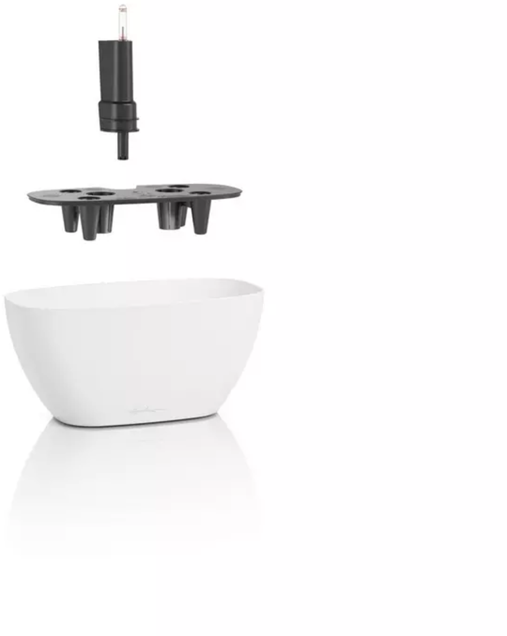 La maceta NAVIO Color 20 realza con elegancia las plantas en ventanas, aparadores o mesas. El práctico sistema de riego garantiza plantas sanas con el mínimo esfuerzo, mientras que la superficie mate y el tono marrón arena aportan a cualquier ambiente un aspecto armonioso y refinado.