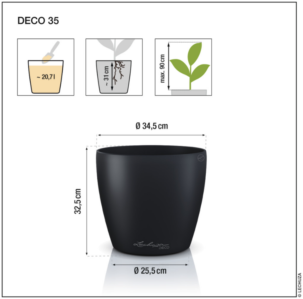 El macetero DECO 35 destaca por su diseño limpio, que encaja perfectamente en cualquier estilo de decoración. La planta se puede colocar directamente en el macetero con su maceta de cultivo, lo que evita tener que trasplantarla y mantiene las manos limpias. El material resistente y de alta calidad garantiza una larga duración y un mantenimiento mínimo. Un accesorio práctico y fiable para quienes desean realzar sus plantas con sencillez y estilo.