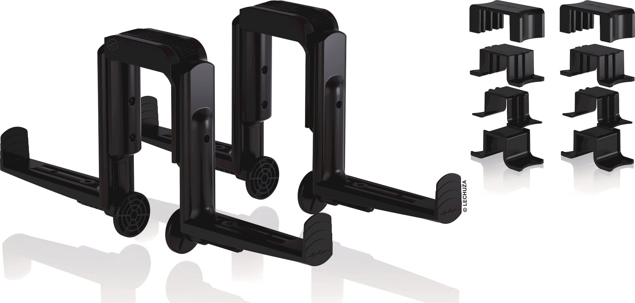 Se incluye: 2 soportes para macetas de balcón DUO (1 par) con juego de adaptadores (4 piezas)