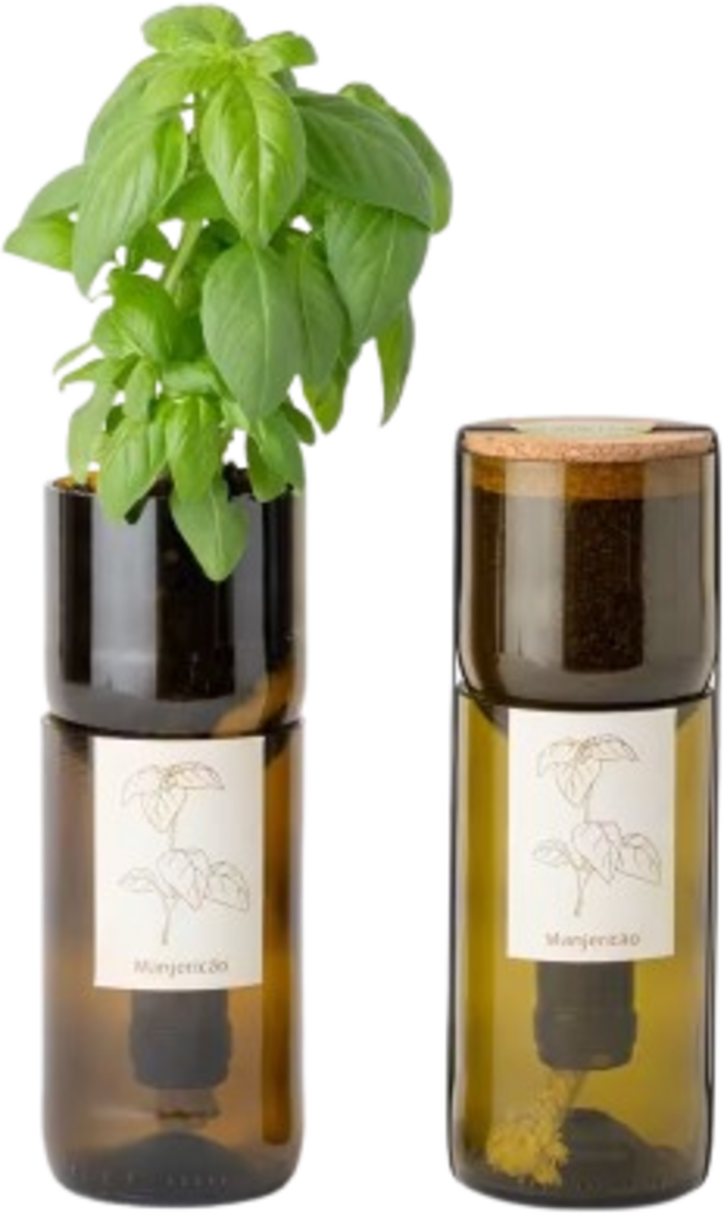 La Grow Bottle - Albahaca transforma una botella de vino reciclada en una elegante maceta con sistema de autorriego. Fácil de cultivar, requiere pocos cuidados y es perfecta para espacios pequeños o como regalo sostenible. Disfruta de albahaca fresca todo el año, directamente de tu Bottle Garden.