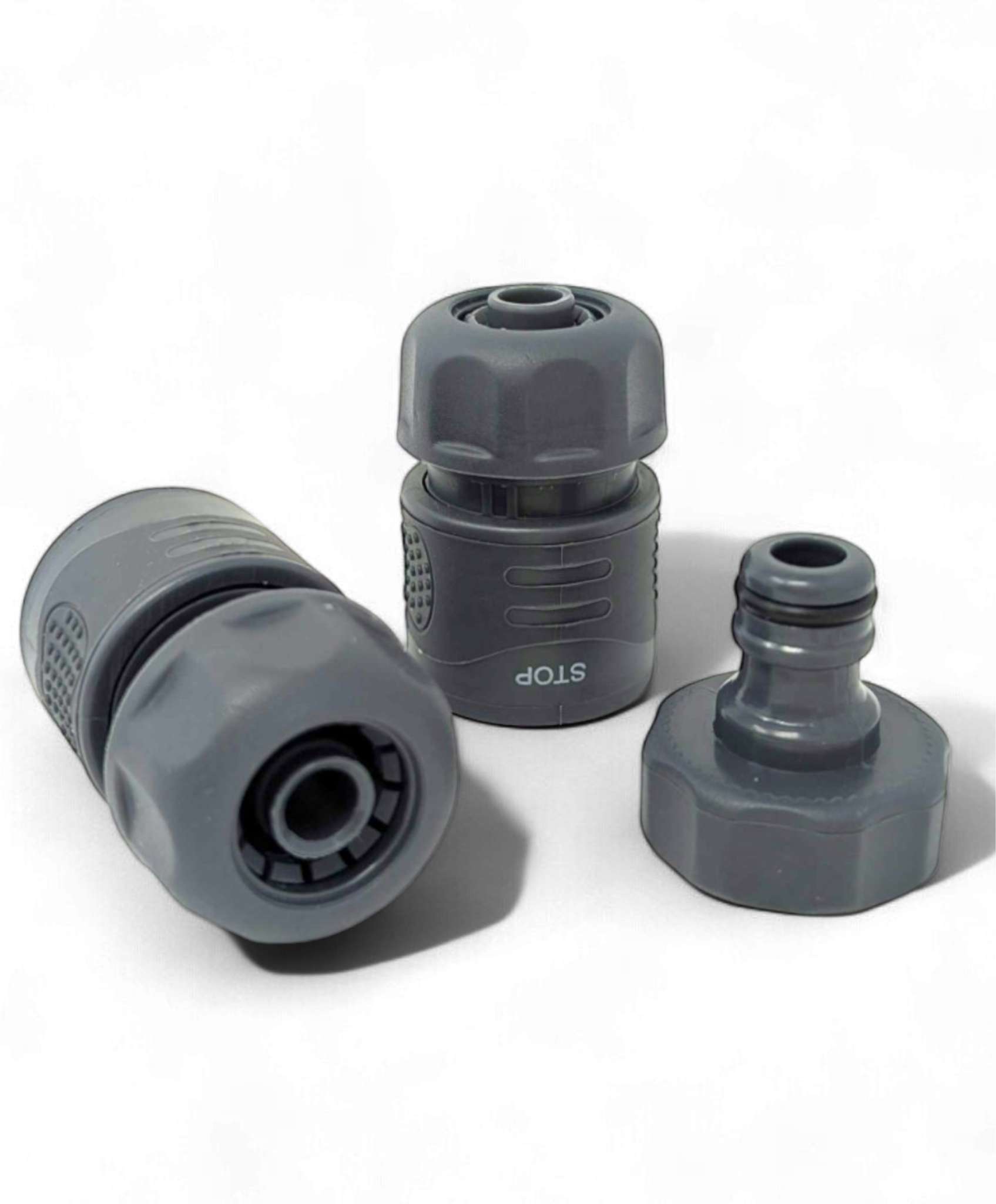 Este práctico y elegante juego te permite conectar la manguera de jardín de forma segura y sin goteos. Es un accesorio imprescindible para el riego del jardín, ya que facilita considerablemente el riego diario.