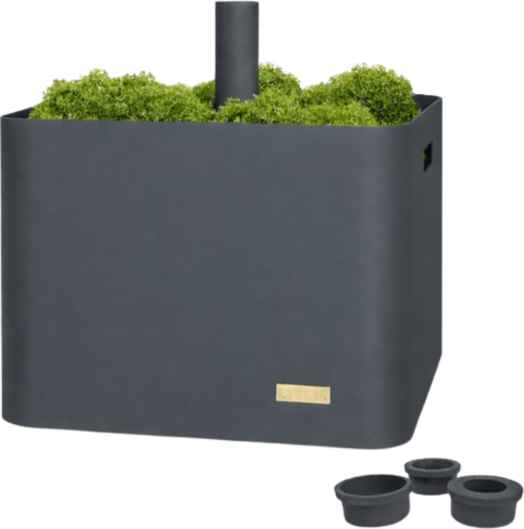 La solución 3 en 1 ideal para balcones y patios que ahorra espacio. Este original producto no sólo proporciona un soporte estable para tu sombrilla, sino que también puede rellenarse con objetos decorativos o plantas para aumentar aún más su peso y estabilidad. También puede utilizarse como mesa auxiliar.