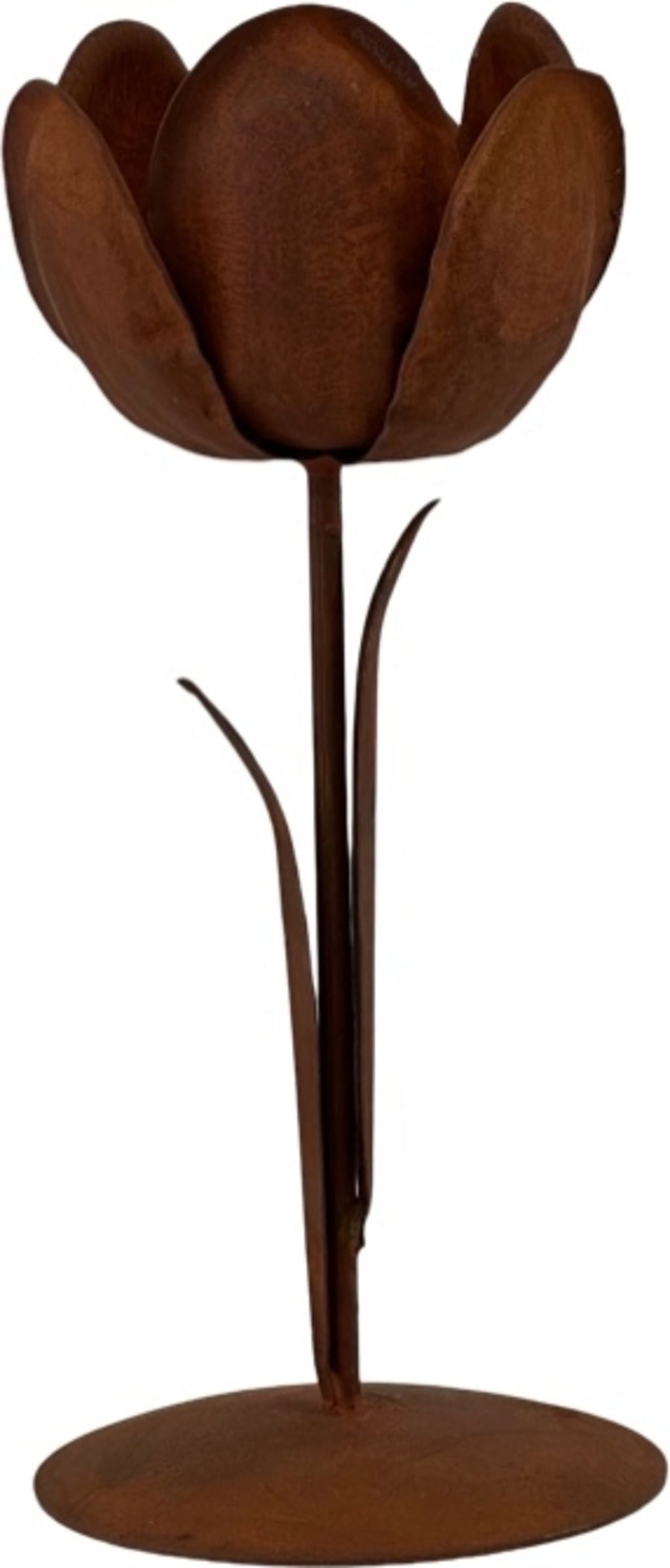 El candelabro "Tulipán" aporta un toque romántico a la mesa. Con forma de delicada flor, ofrece un lugar decorativo para velas cónicas. Fabricado en hierro resistente y con un acabado rústico antiguo, combina una estética rústica con un ligero toque floral.