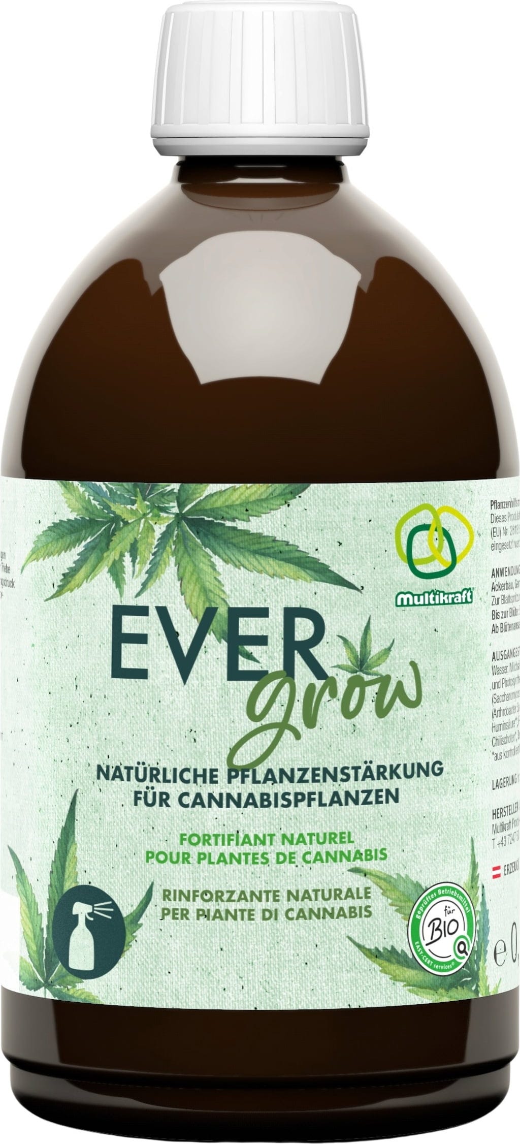 Multikraft Evergrow suministra a las plantas valiosos nutrientes directamente a través de las hojas. Su fórmula orgánica favorece un crecimiento vigoroso y fomenta la armonía de las hojas y la floración. Es especialmente adecuado en las fases más exigentes, como los periodos de calor o sequía.