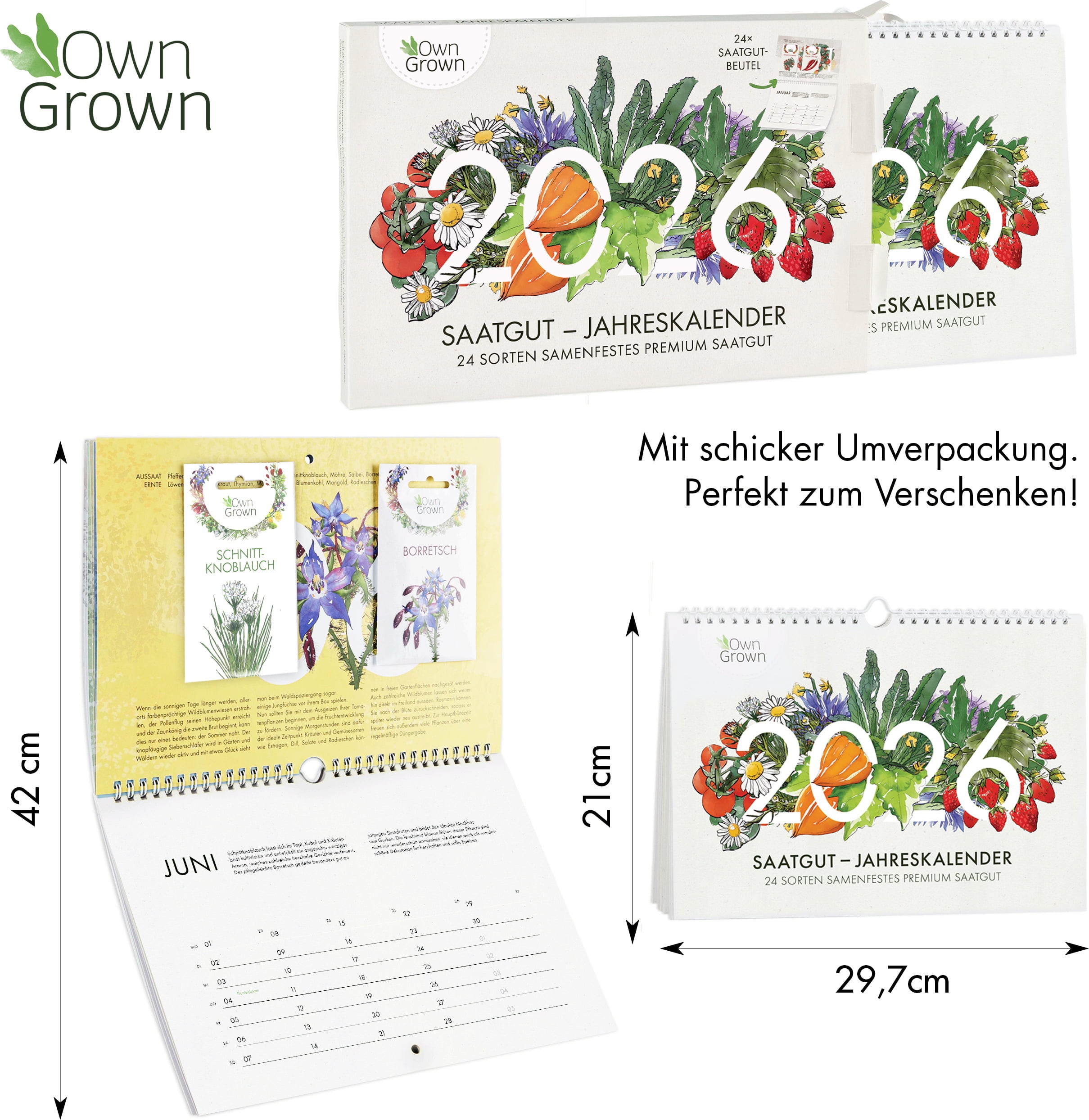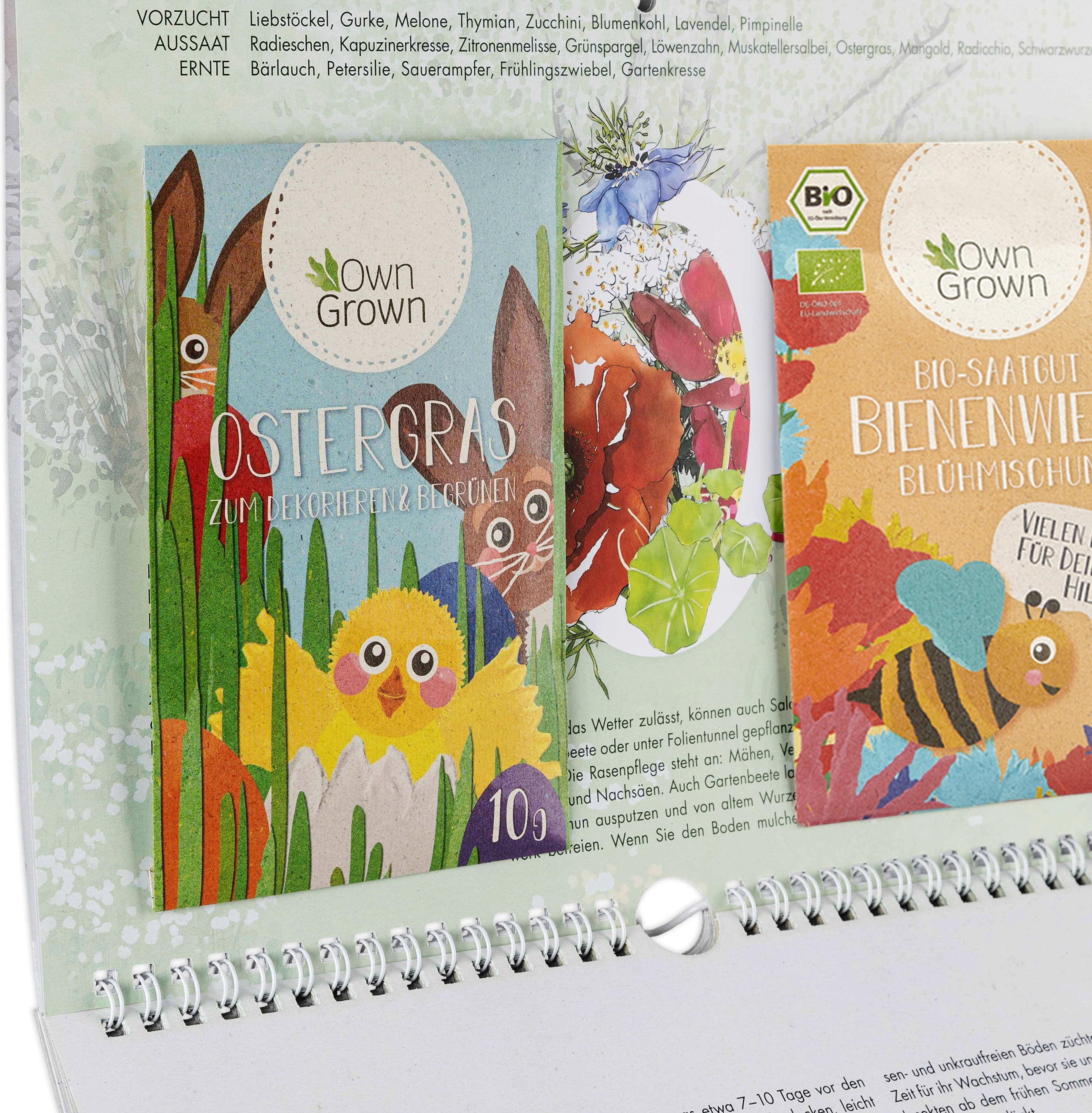 Este calendario anual ilustrado con cariño no sólo deja espacio para tus citas personales, sino que también contiene dos paquetes de semillas listos para usted cada mes. Disfruta de hortalizas aromáticas, hierbas, frutas dulces y flores. Incluso puedes sembrar directamente muchas de las variedades. Además, recibirás muchos consejos e información sobre lo que se avecina en el mes correspondiente, como podar tomates, cortar plantas leñosas o sembrar flores silvestres. Mes a mes, te llevaremos de la mano y le guiaremos a través de un fructífero año de jardinería