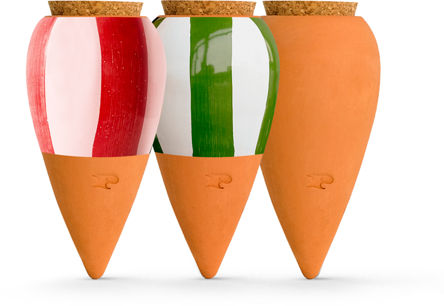 Las Olla Mini-Ollas en pack de 3 no son sólo un elemento decorativo, sino también un práctico accesorio para tus plantas de interior. El cono cerámico regula el flujo de agua y proporciona humedad a tu planta las 24 horas del día.
