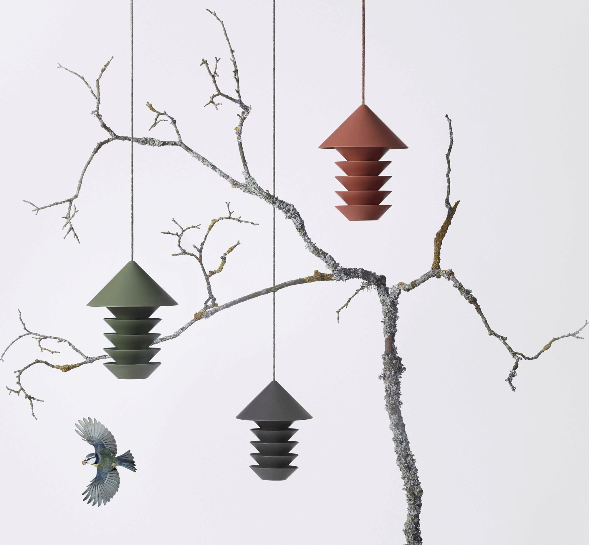 Un diseño minimalista y una producción orientada a la sostenibilidad caracterizan a este comedero para pájaros.