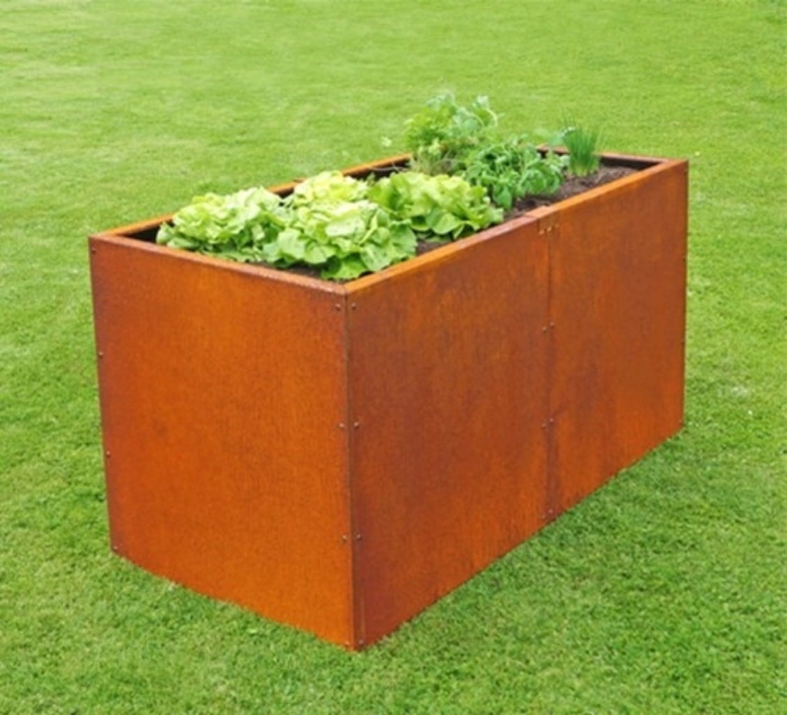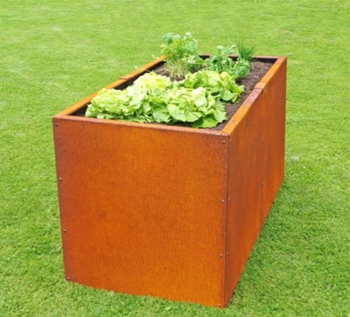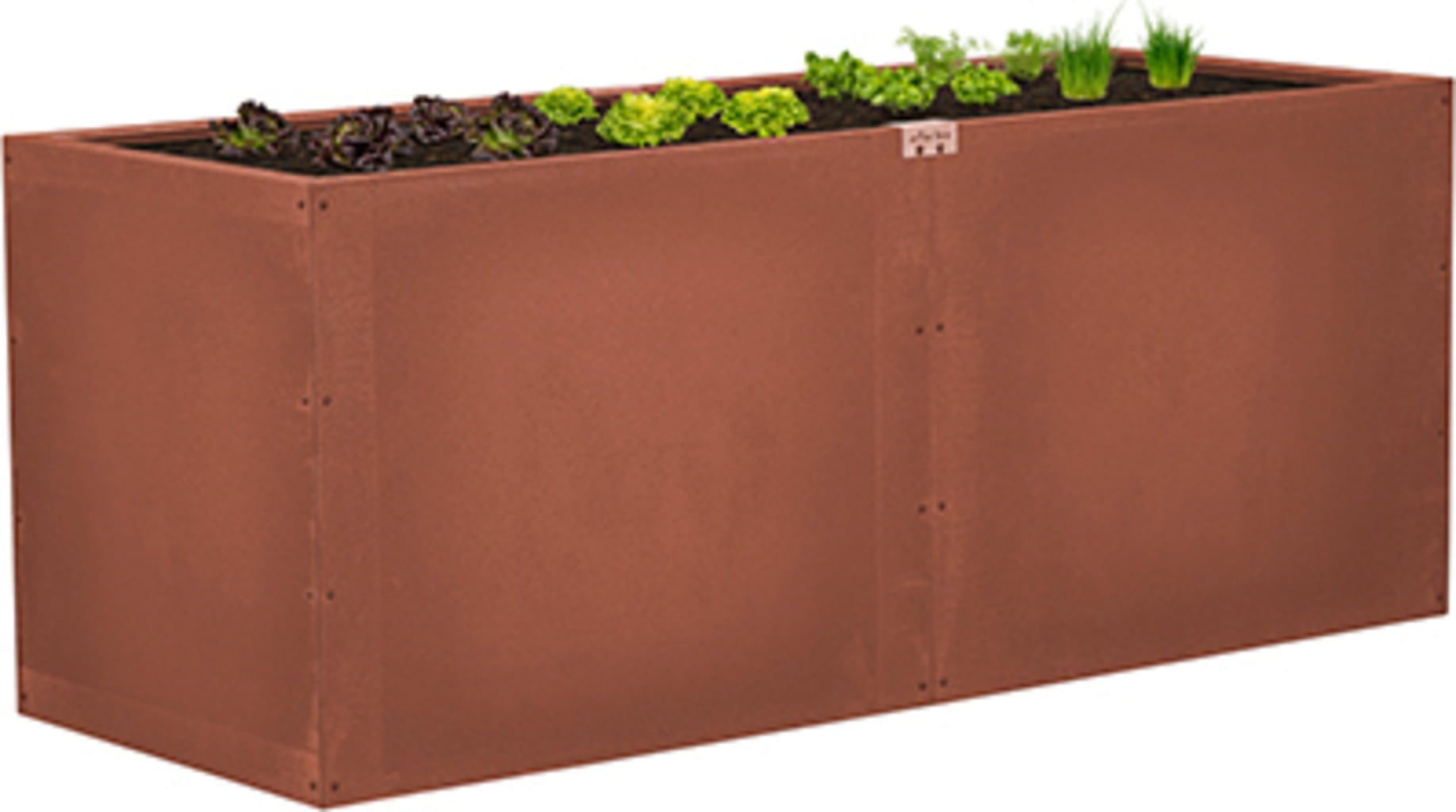 El óxido es atemporal y siempre bello, sin necesidad de mantenimiento, pintura o engrasado, por eso están tan de moda los huertos elevados de acero inoxidable. Otras razones son las muchas opciones de diseño y el hecho de que no tienes que agacharte para cosechar las maravillosas verduras. Además, el óxido es una protección natural óptima contra los caracoles y babosas, porque no les gusta el óxido.