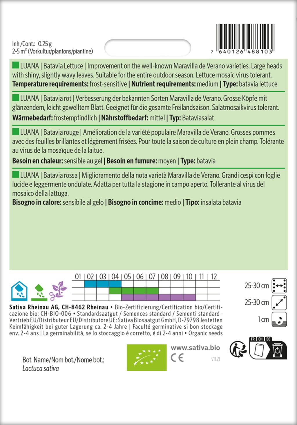 | Fabricante: | Sativa Biosaatgut GmbH, Keltenweg 4, 79798 , Jestetten, Austria, sativa@sativa.bio, www.sativa.bio |