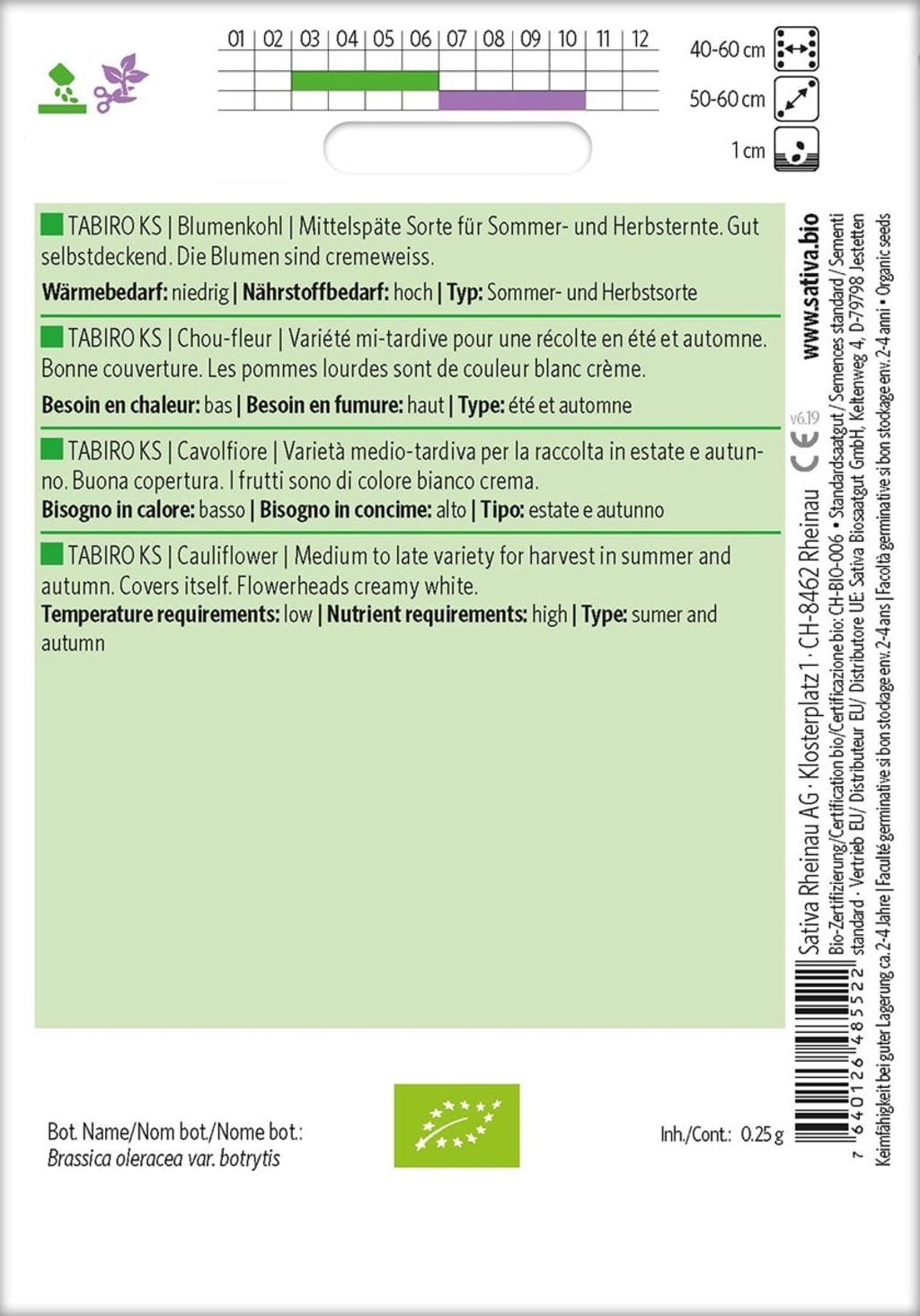 | Distancia de siembra: | Aprox. 60 x 40+ cm |