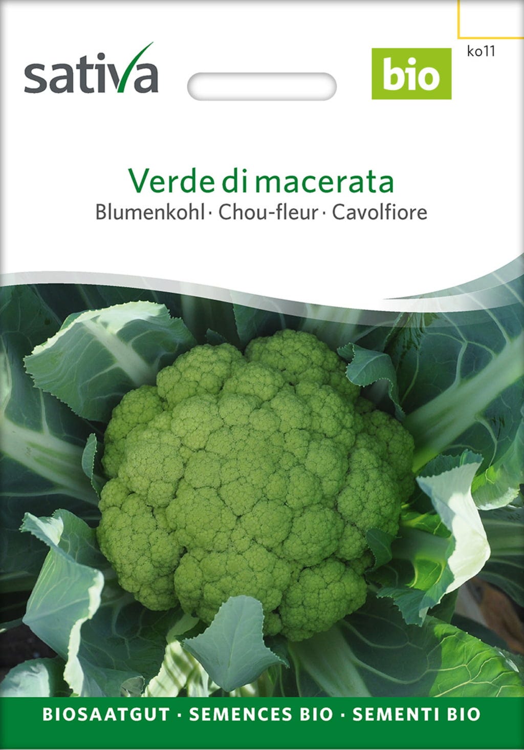 La coliflor de color verde claro Verde di Macerata convence por su textura fina y su forma redonda y compacta. Forma cabezas grandes y firmes de hasta 1 kg y mantiene su atractivo color incluso después de la cocción. Está lista para la cosecha después de unos 90 días y procede de la cuidadosa cría de conservación de Sativa en Rheinau.