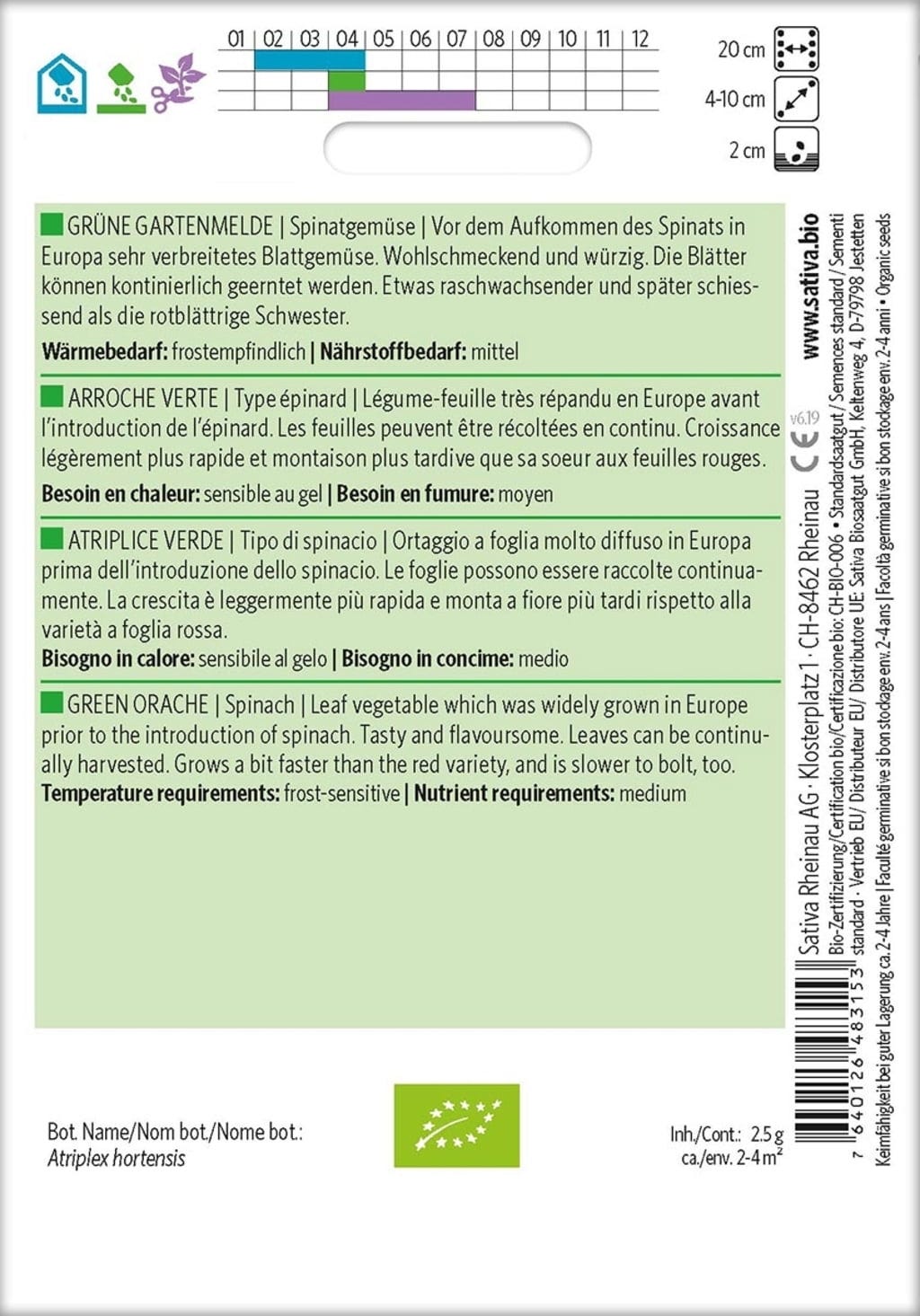Sativa Espinaca de jardín ecológica "Grüne Gartenmelde"