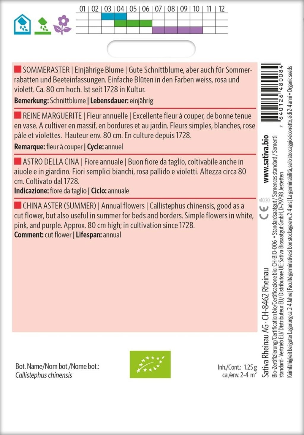 Sativa Flor anual ecológica "Aster de China"