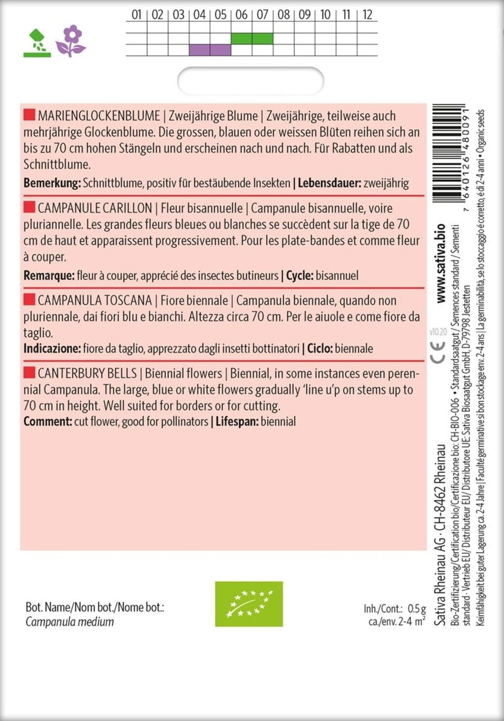 | Nombre botánico: | Campanula medium |