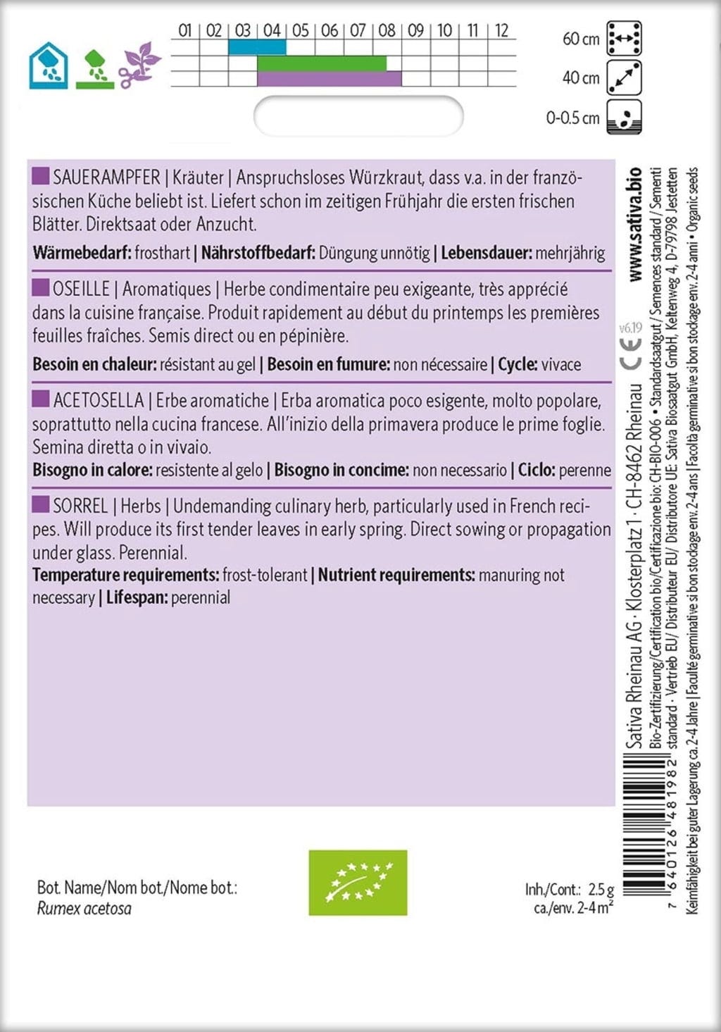 | Fabricante: | Sativa Biosaatgut GmbH, Keltenweg 4, 79798 , Jestetten, Austria, sativa@sativa.bio, www.sativa.bio |