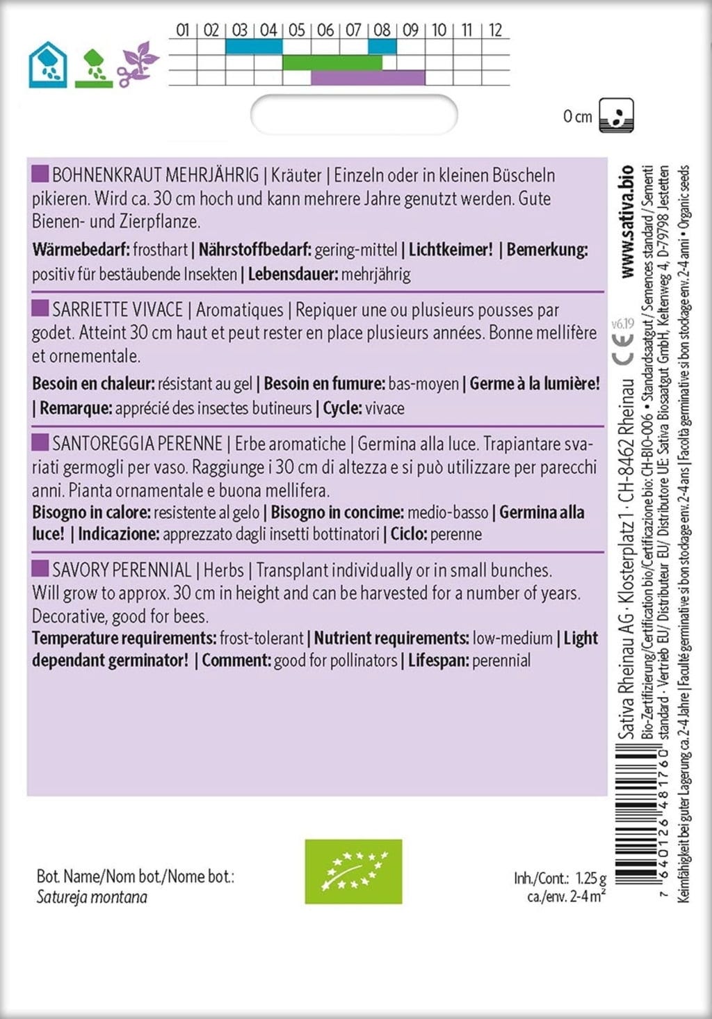 | Fabricante: | Sativa Biosaatgut GmbH, Keltenweg 4, 79798 , Jestetten, Austria, sativa@sativa.bio, www.sativa.bio |