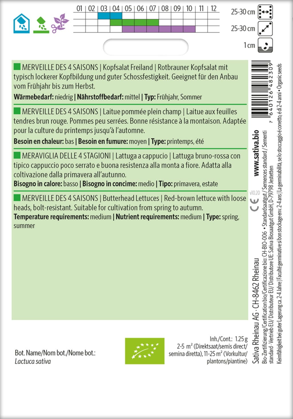 Sativa Lechuga Bio de exterior "Merveille Des 4 Saisons"