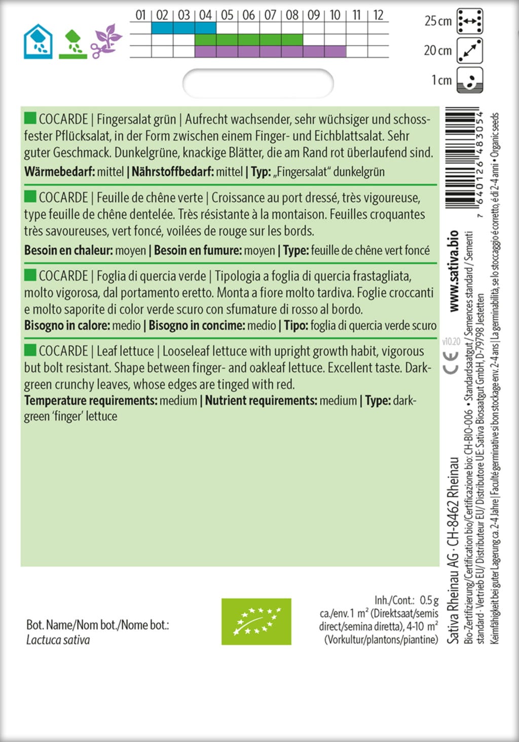 Sativa Lechuga de dedos bio verde "Cocarde"