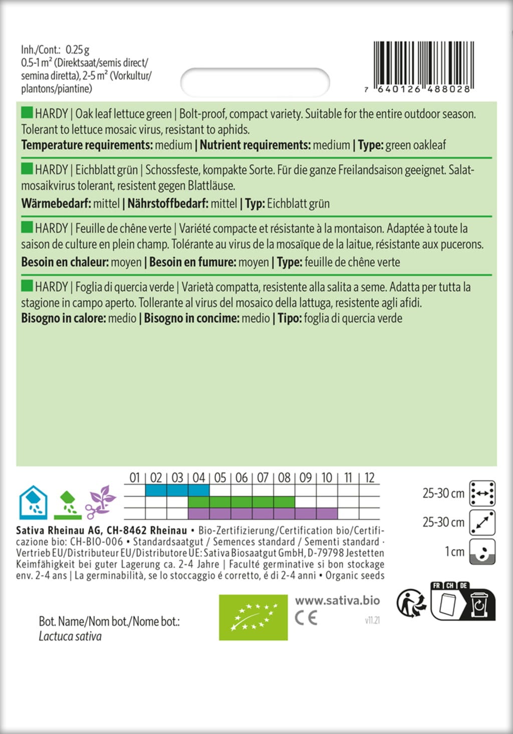 Sativa Lechuga hoja de roble verde ecológica "Hardy"