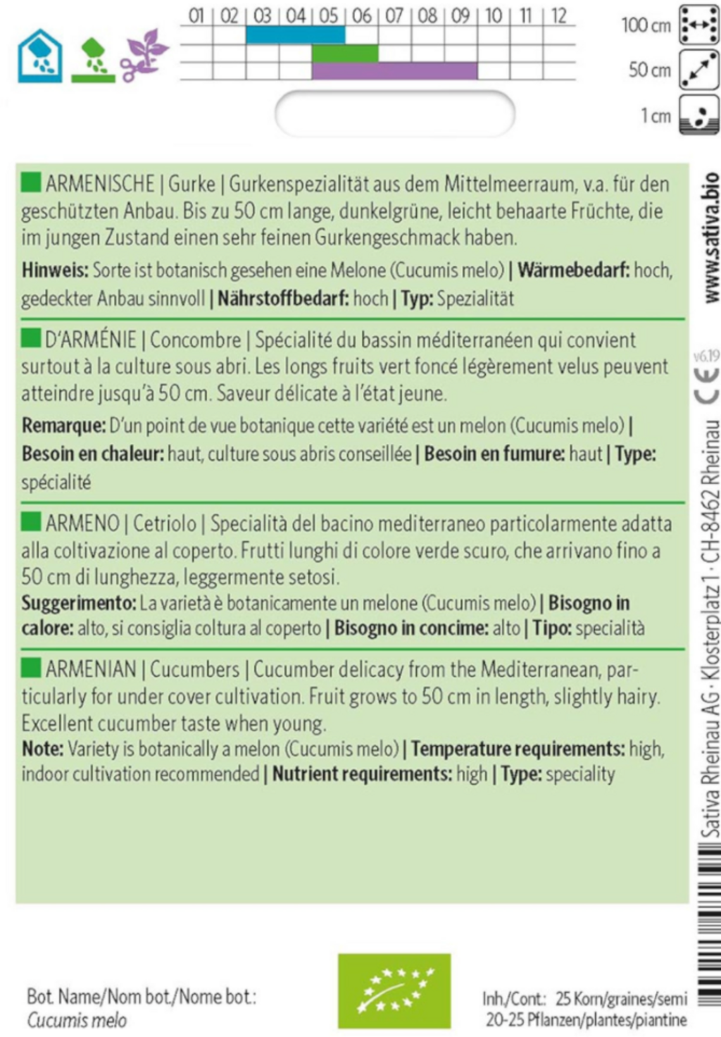 El maravilloso pepino armenio también se conoce como melón pepino. Llegó a Europa a través de Armenia. Los frutos tienen un sabor a pepino muy delicado cuando son jóvenes.