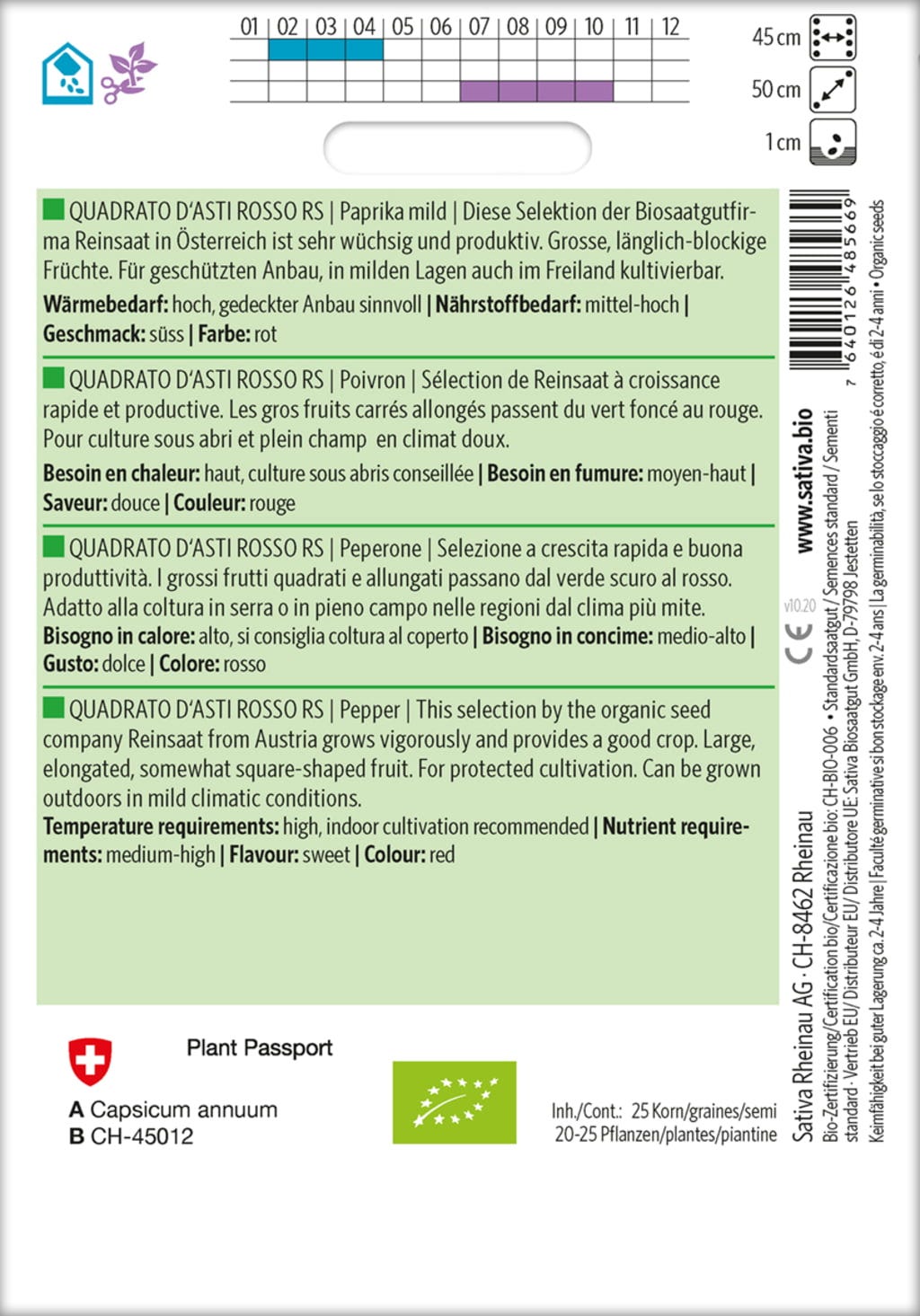 | Fabricante: | Sativa Biosaatgut GmbH, Keltenweg 4, 79798 , Jestetten, Austria, sativa@sativa.bio, www.sativa.bio |
